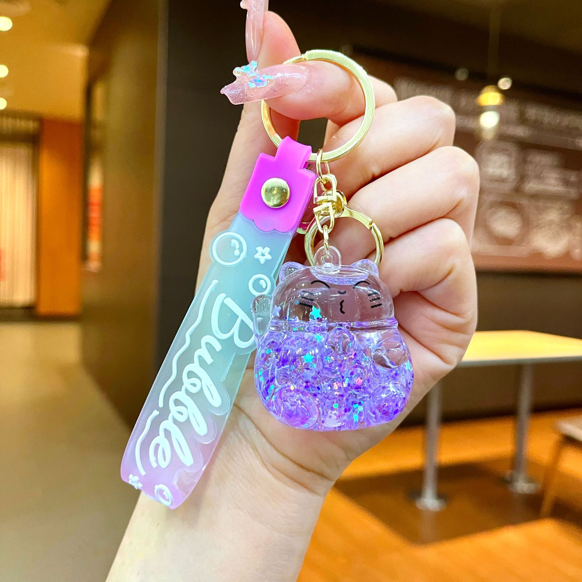 • 그라데이션 로프 [보라색] 야광 버블 비즈 행운의 고양이