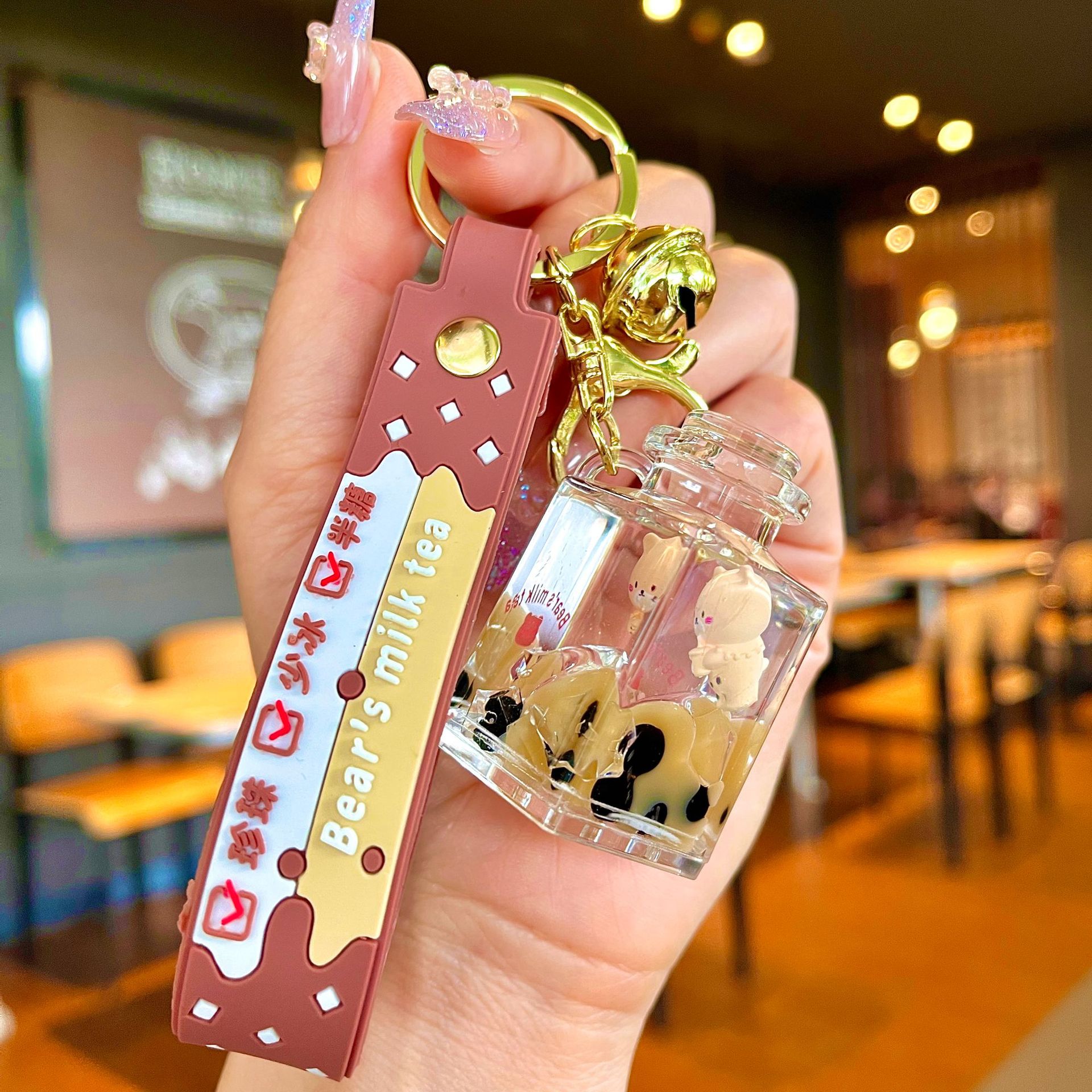 • 버블 티 베어 작은 사각형 병