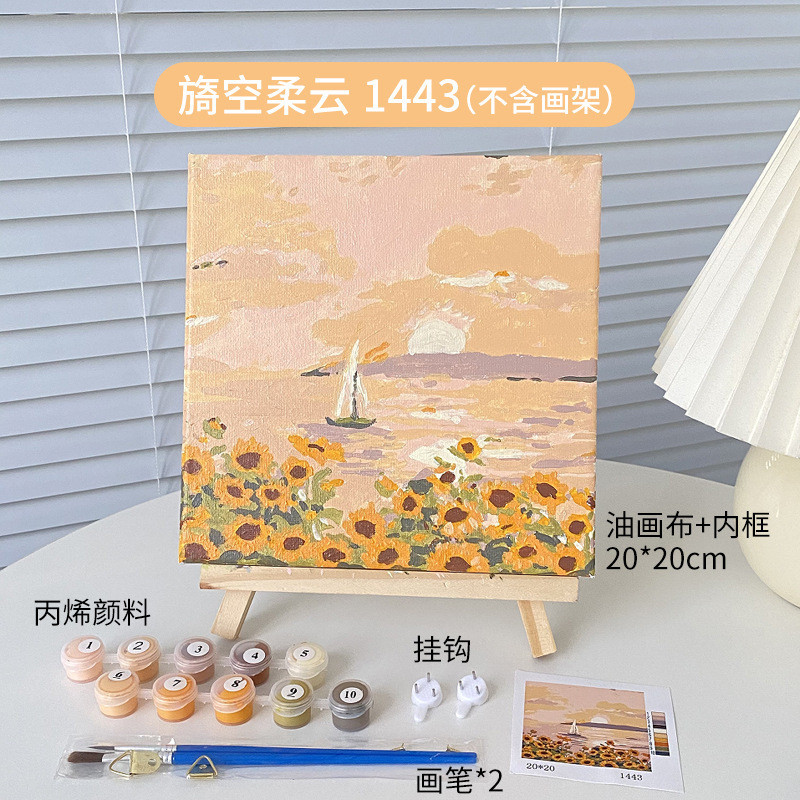 DIY 디지털 풍경 유화 장식 그림 수제 장난감 손으로 그린 색칠 아크릴 페인트 풍경 유화 도매스토어 가기