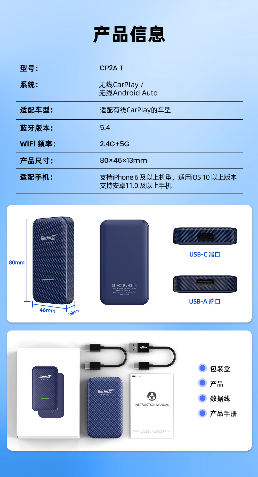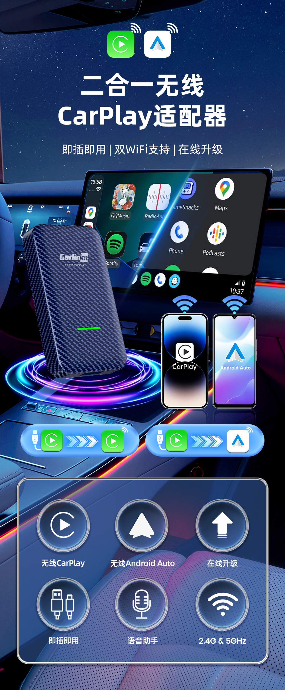카링킷 차량용 인터넷 모듈 카플레이 무선 박스 안드로이드 오토 무선 업그레이드 5.0
