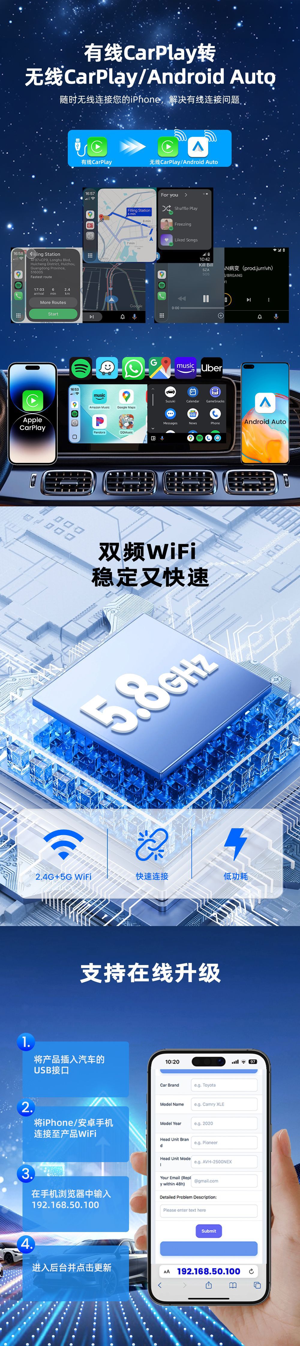 카링킷 차량용 인터넷 모듈 카플레이 무선 박스 안드로이드 오토 무선 업그레이드 5.0스토어 가기