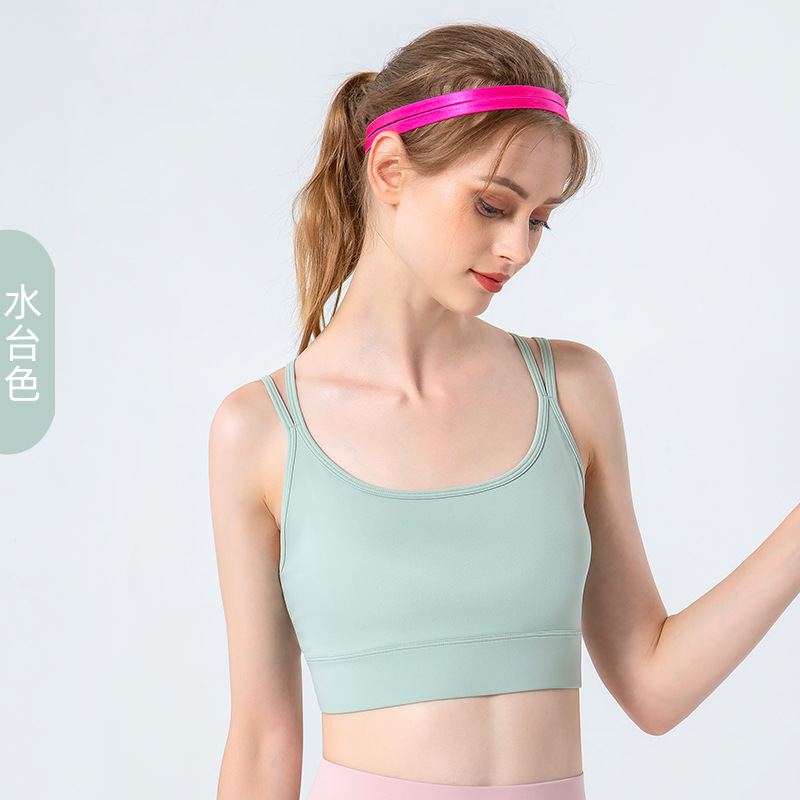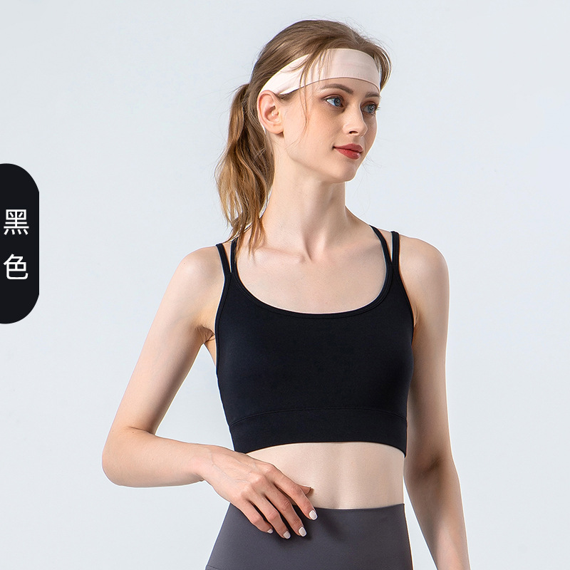LULU 크로스 백 스포츠 브라 여성 가을, 겨울 새로운 중간 강도 요가 피트니스 스파게티 스트랩 스포츠 브라