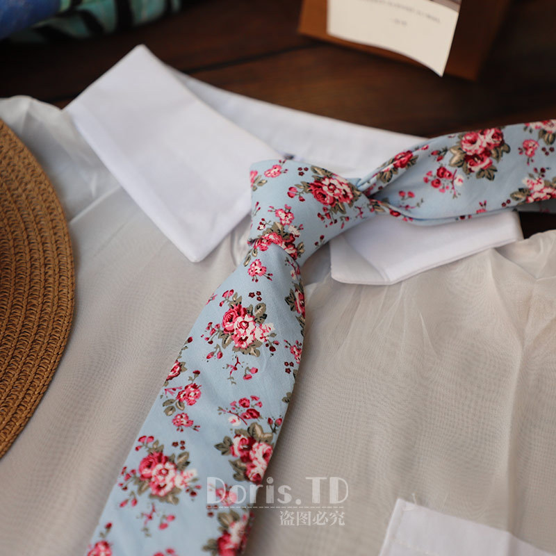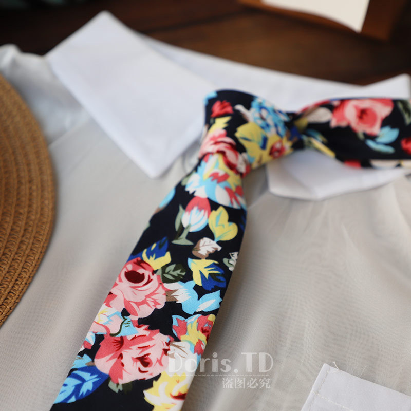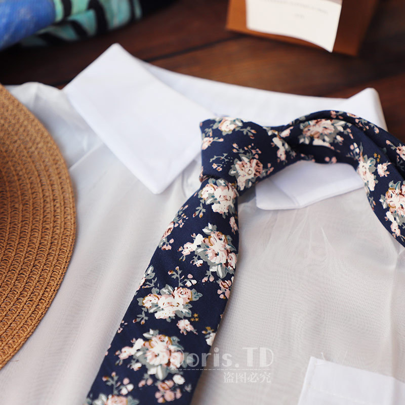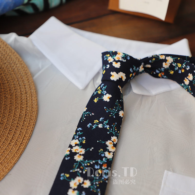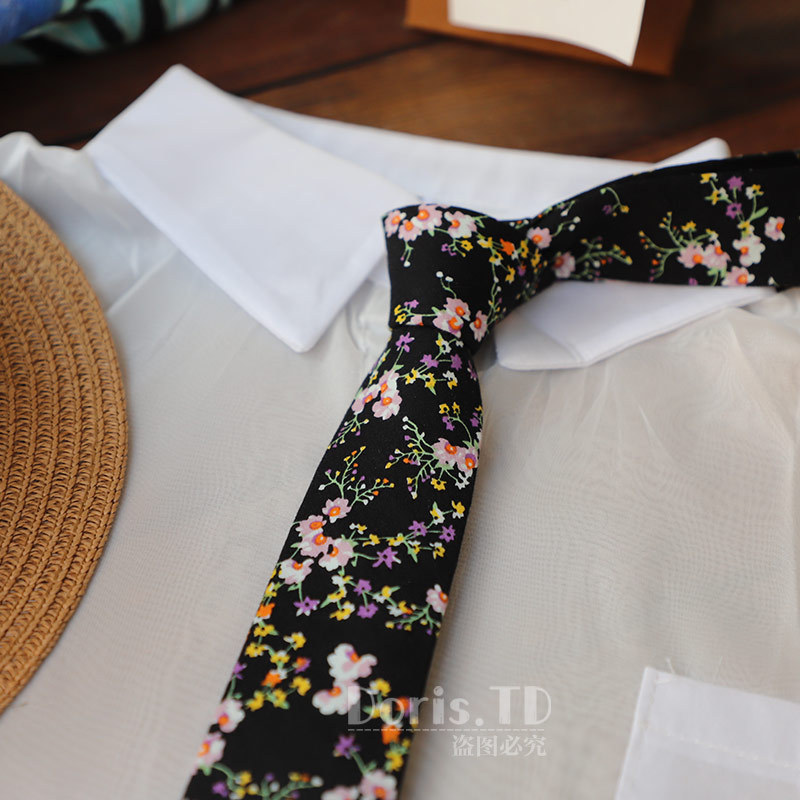 공장 도매 빈티지 인쇄 면화 꽃 넥타이 남성 한국 스타일 캐주얼 대학 스타일 좁은 6CM 손 스타일스토어 가기