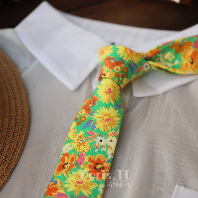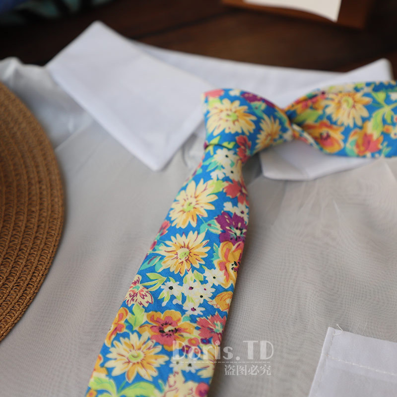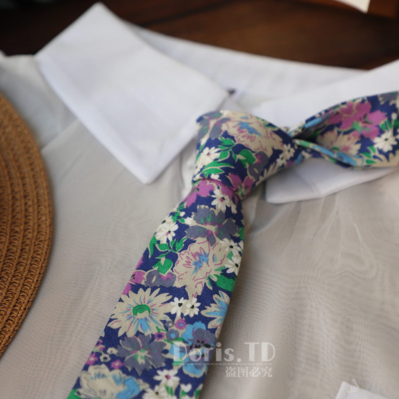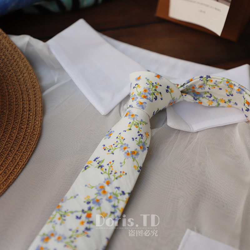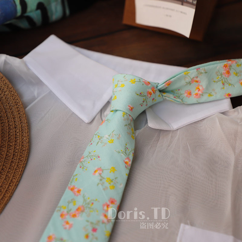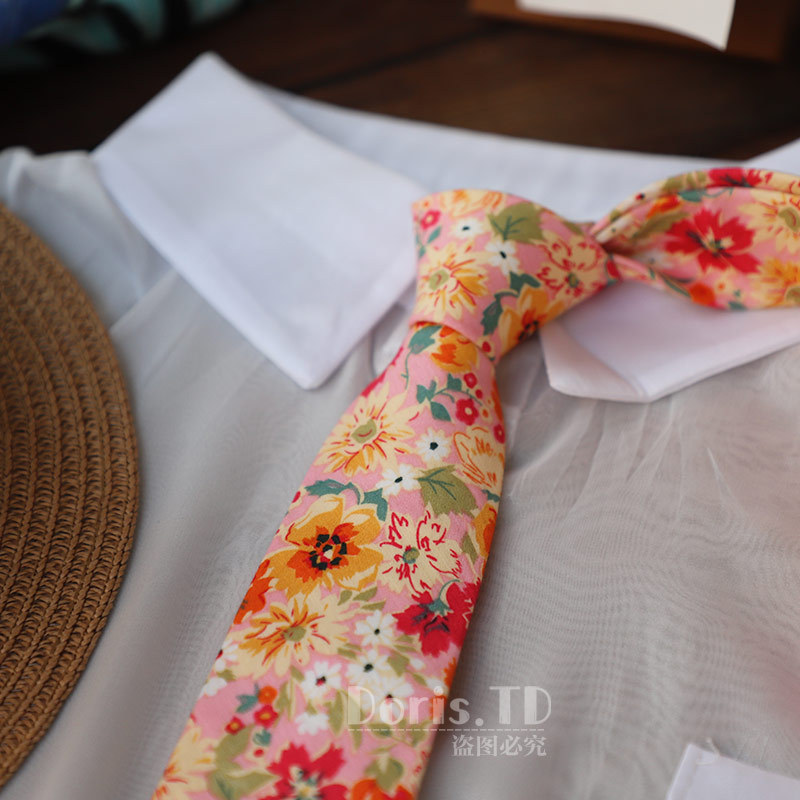공장 도매 빈티지 인쇄 면화 꽃 넥타이 남성 한국 스타일 캐주얼 대학 스타일 좁은 6CM 손 스타일스토어 가기