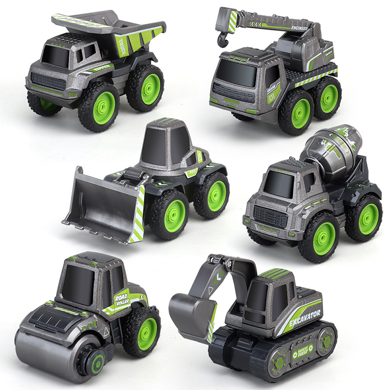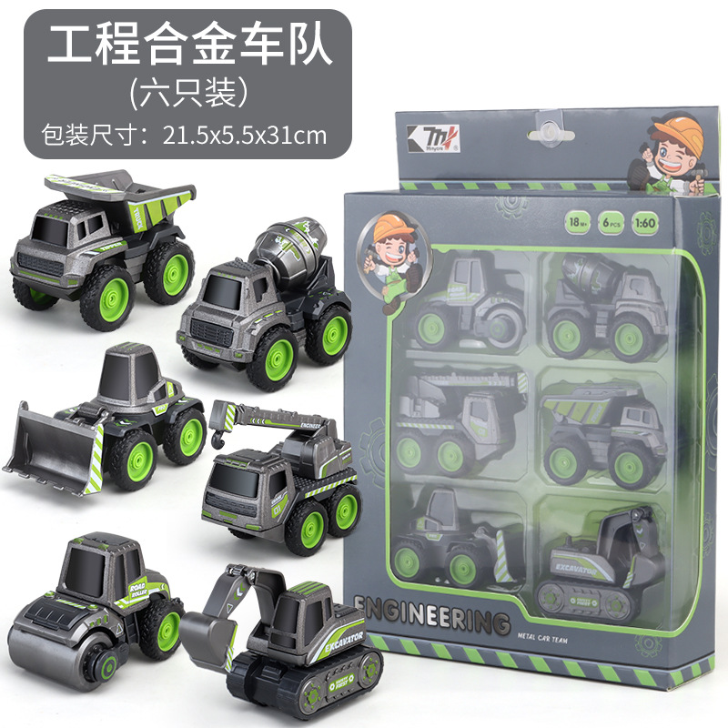 어린이 장난감 풀백 자동차 6 블랙 엔지니어링 팀 굴삭기 로드 롤러 불도저 믹서 트럭 크레인 모델