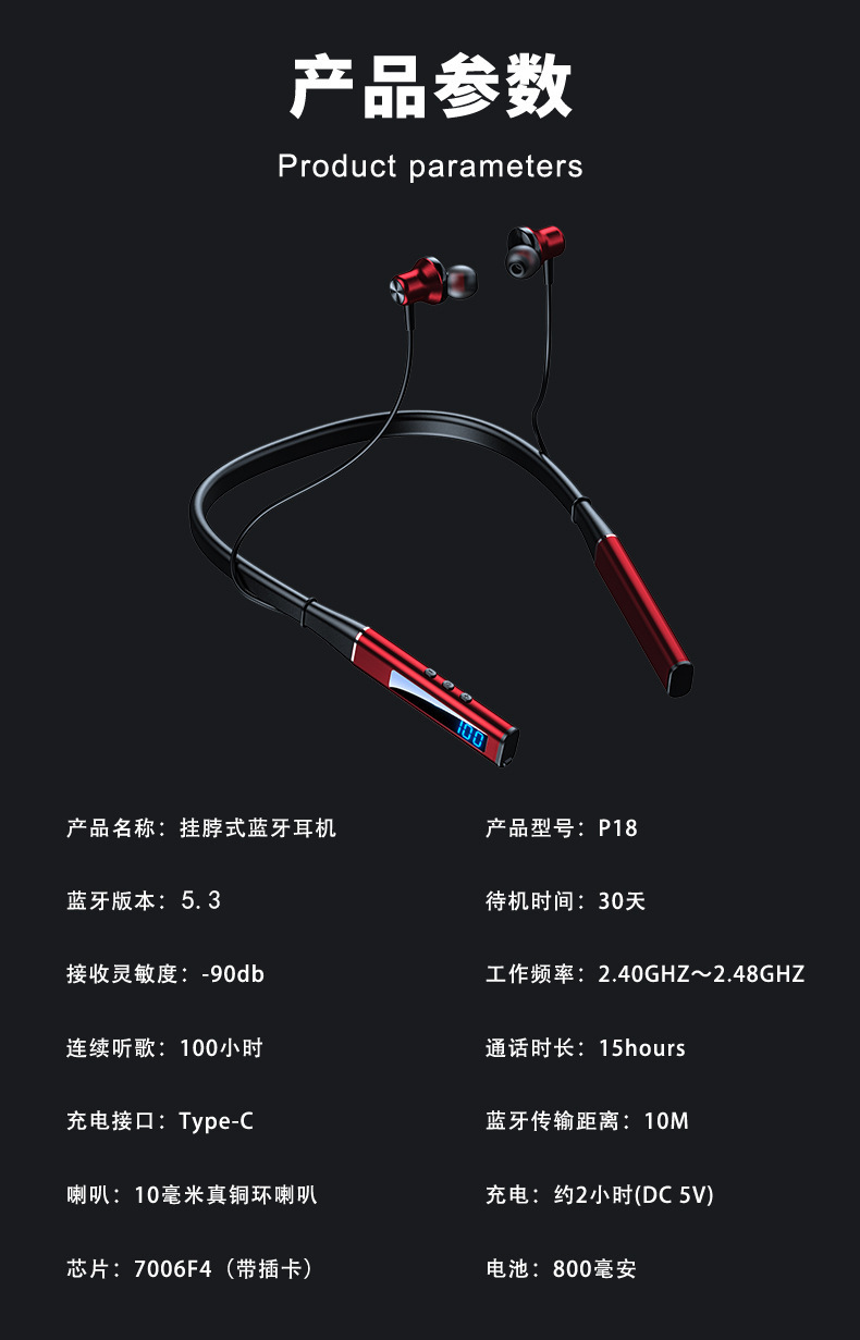 신형 크로스보더 5.3 넥밴드 이어폰 고음질 무선 블루투스 이어폰 저지연 e스포츠 게임용 범용 도매스토어 가기