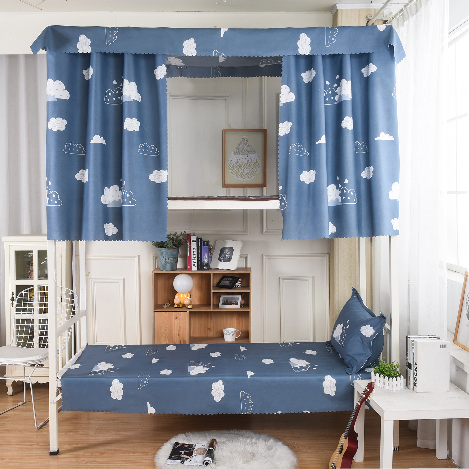 도매 대학생 기숙사 침대 커튼 기숙사 싱글 침대 음영 천 커튼 상단 및 하단 이층 여성 침대 커튼 원피스 배달스토어 가기