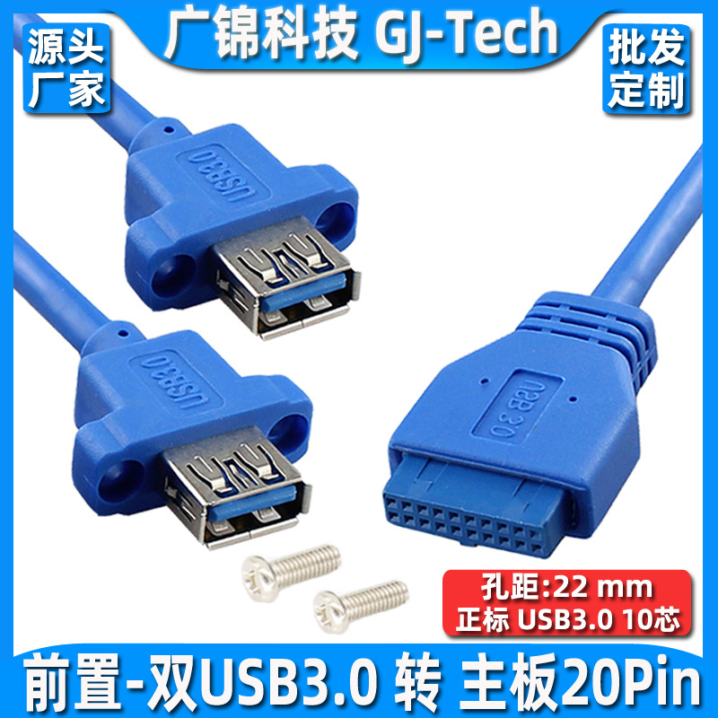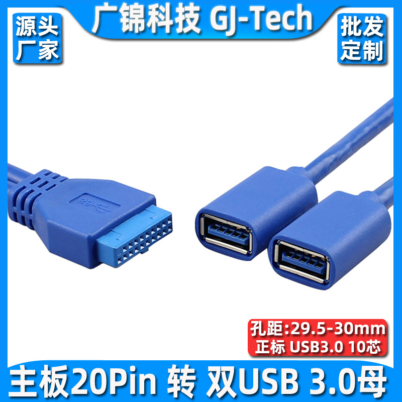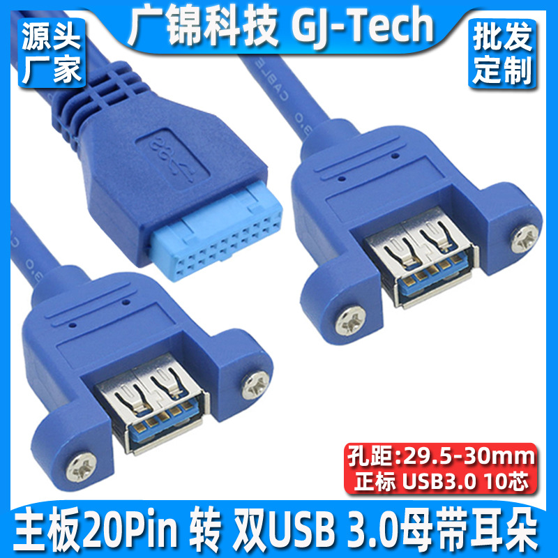 USB3.0双口母头扩展连接线主板20pin转usb30外接转换线两口挡板线