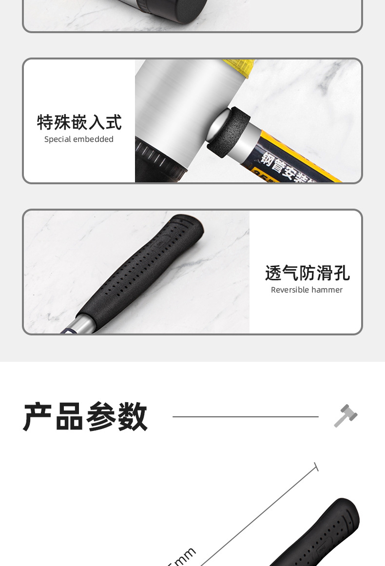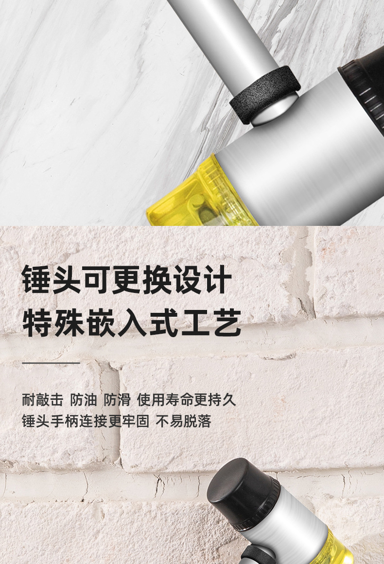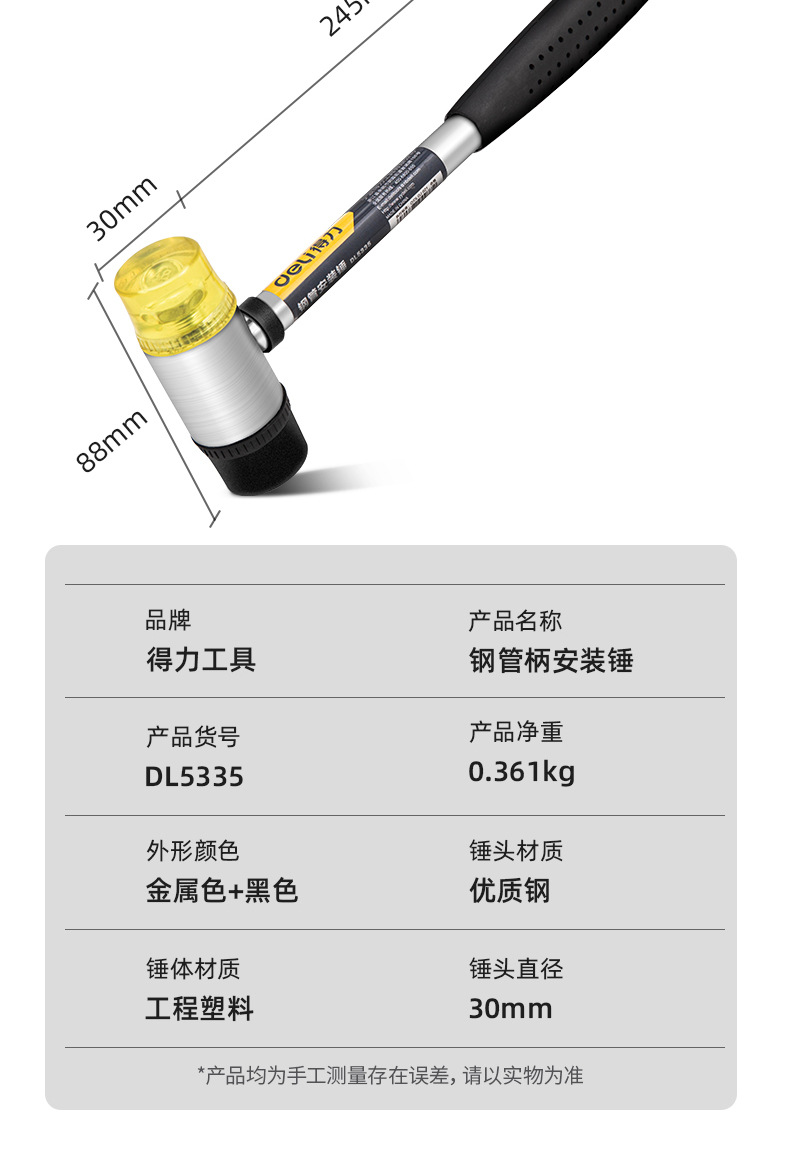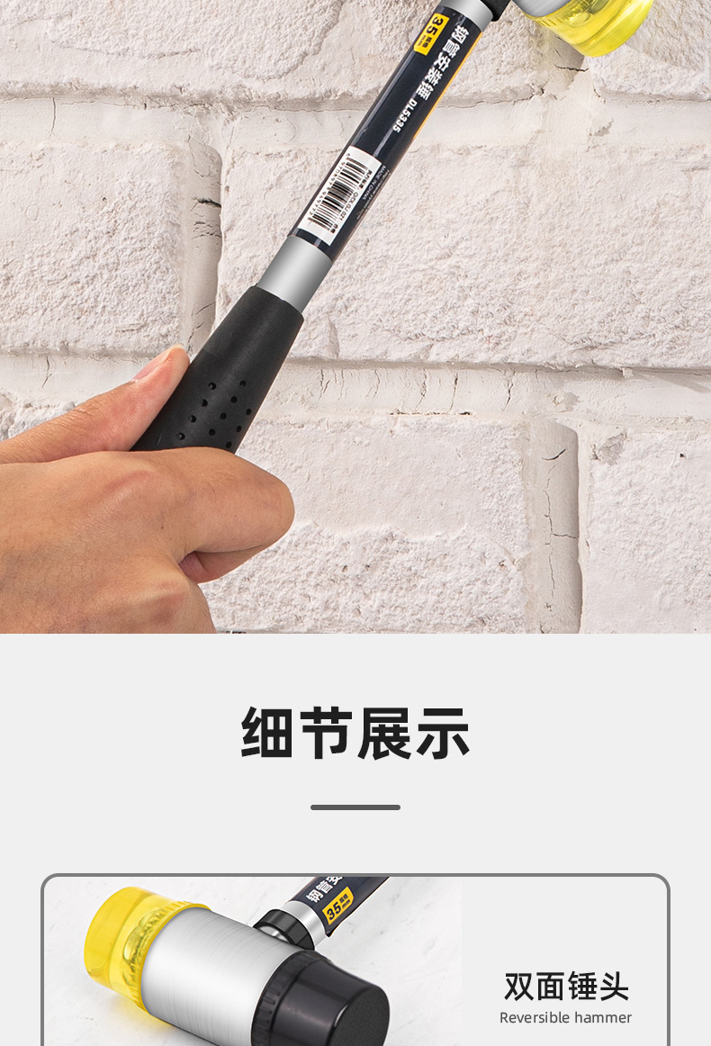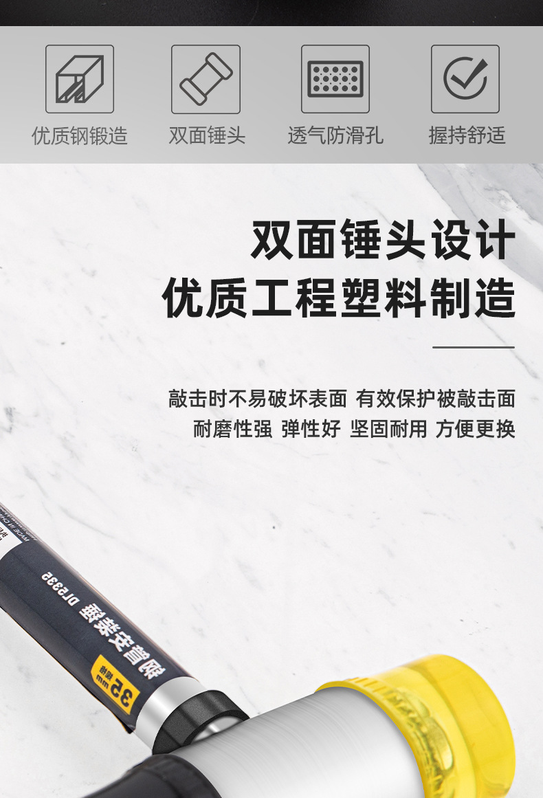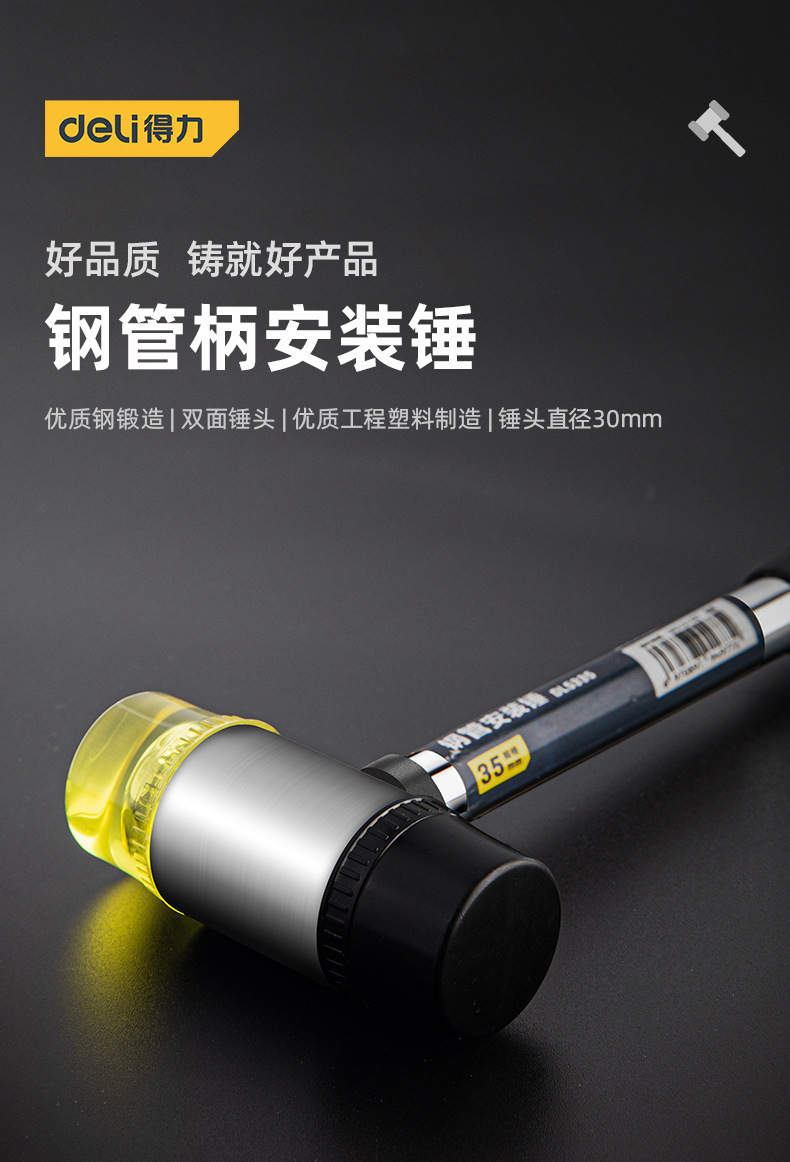델리툴 DL5335 강철 손잡이 설치용 망치 고무망치 고무 설치용 망치 타일 망치 직경 35mm