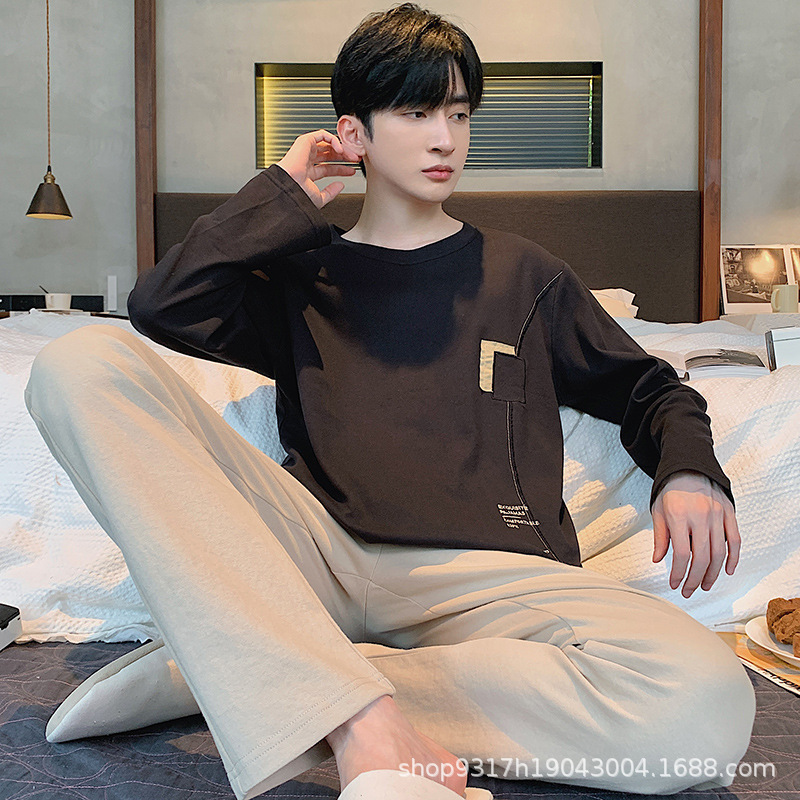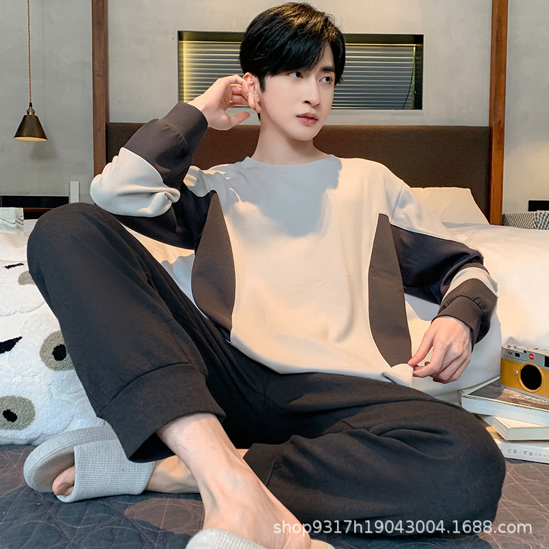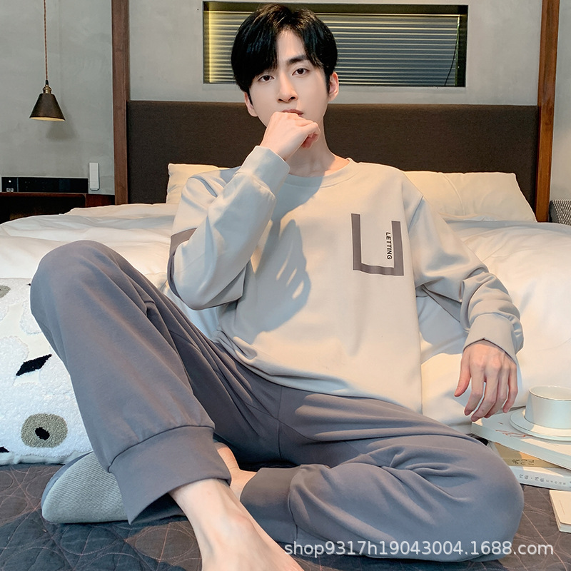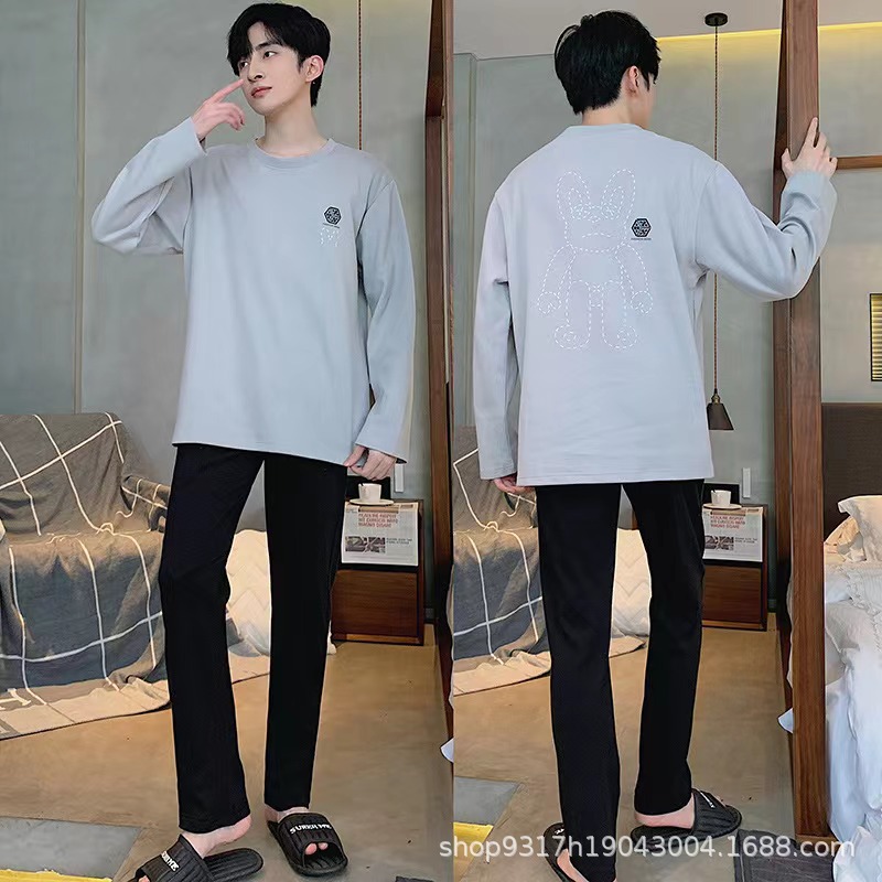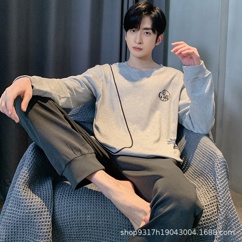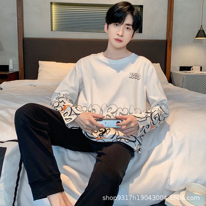 남성용 과일무늬 잠옷, 가을/봄용 순면 긴팔 긴바지 세트, 외출복 가능, 남성 홈웨어, 북유럽 스타일스토어 가기
