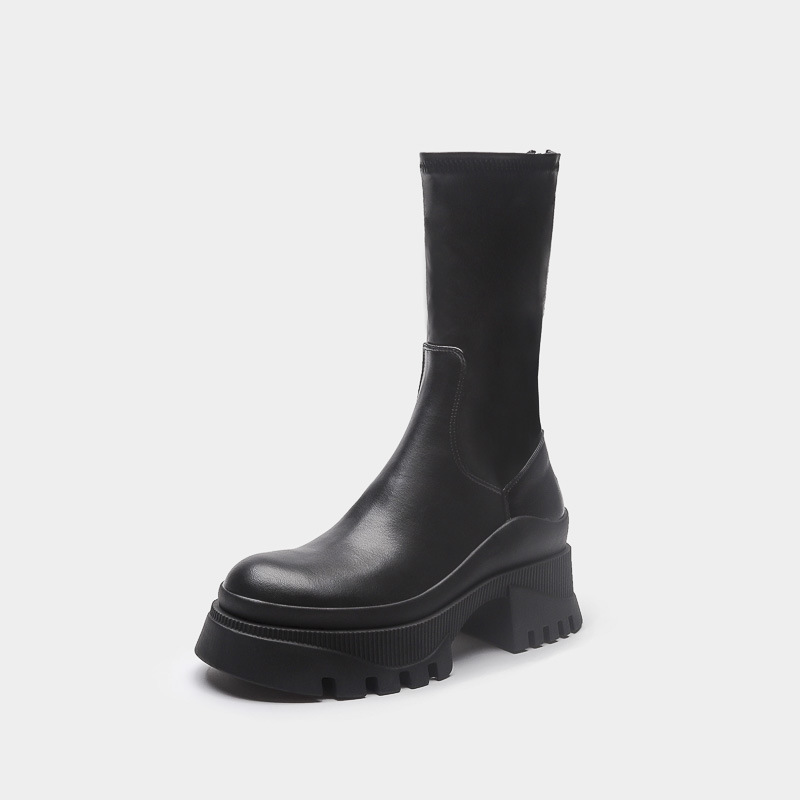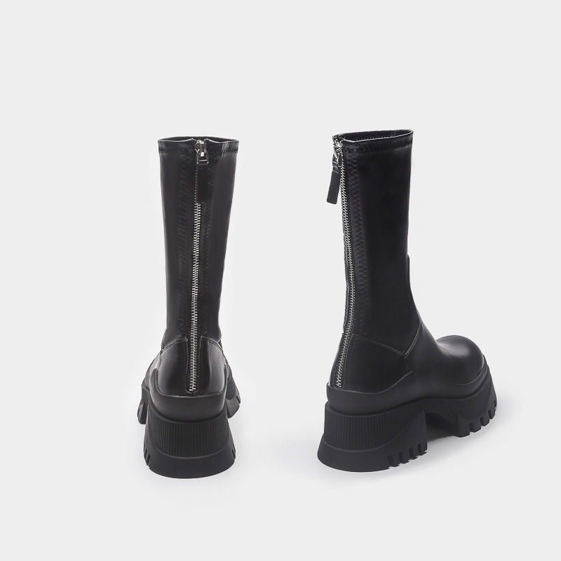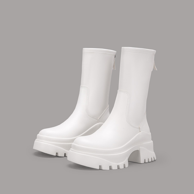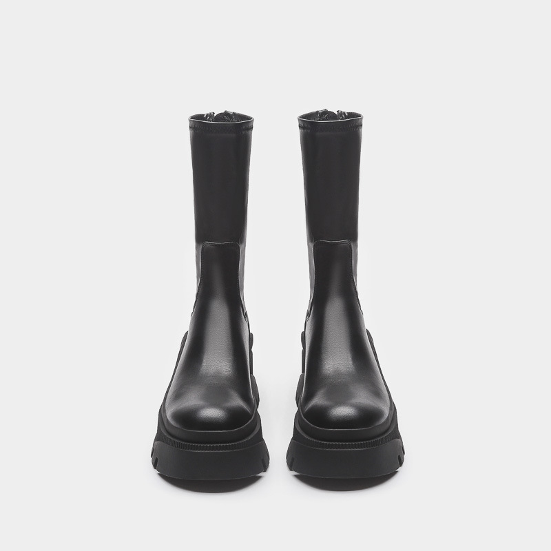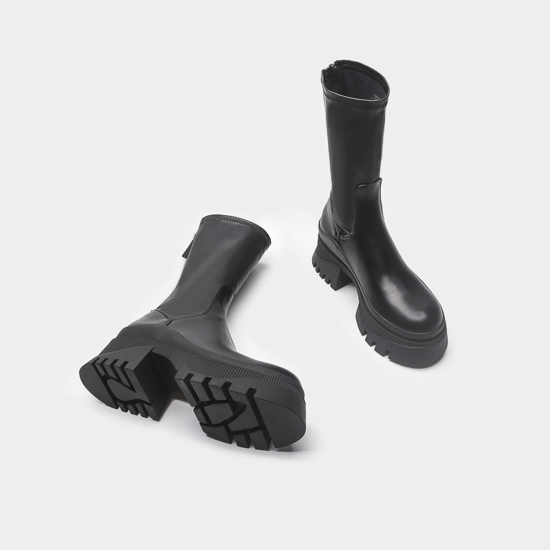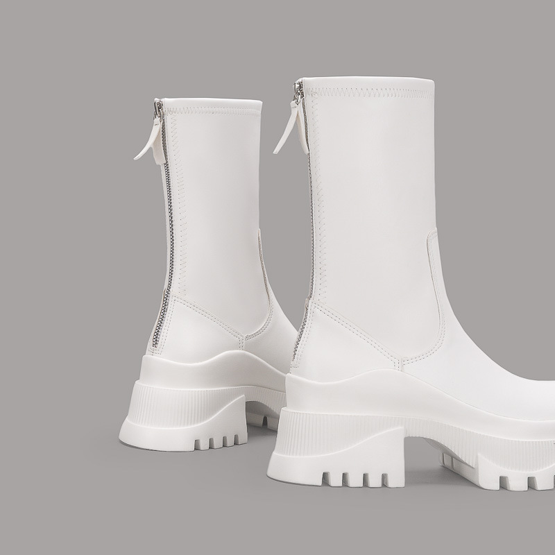 2022 새로운 국경 대외 무역 짧은 부츠 여성 두꺼운 바닥 그루브 패턴 바닥 중간 튜브 탄성 부츠 뒤 지퍼 마틴 부츠