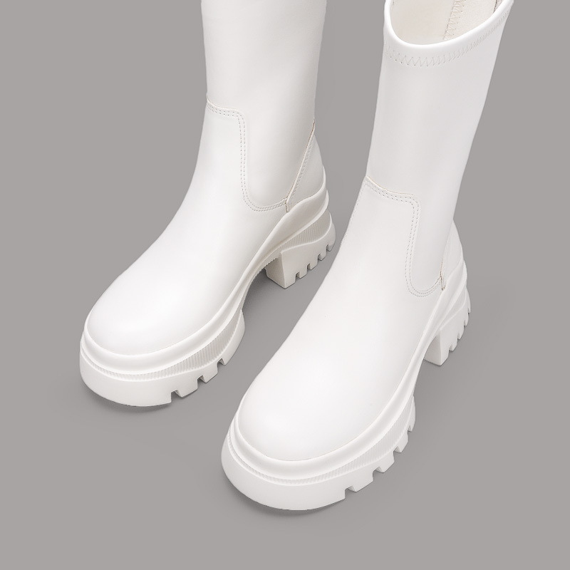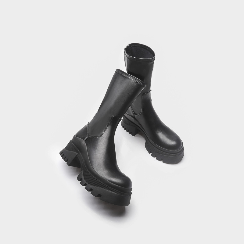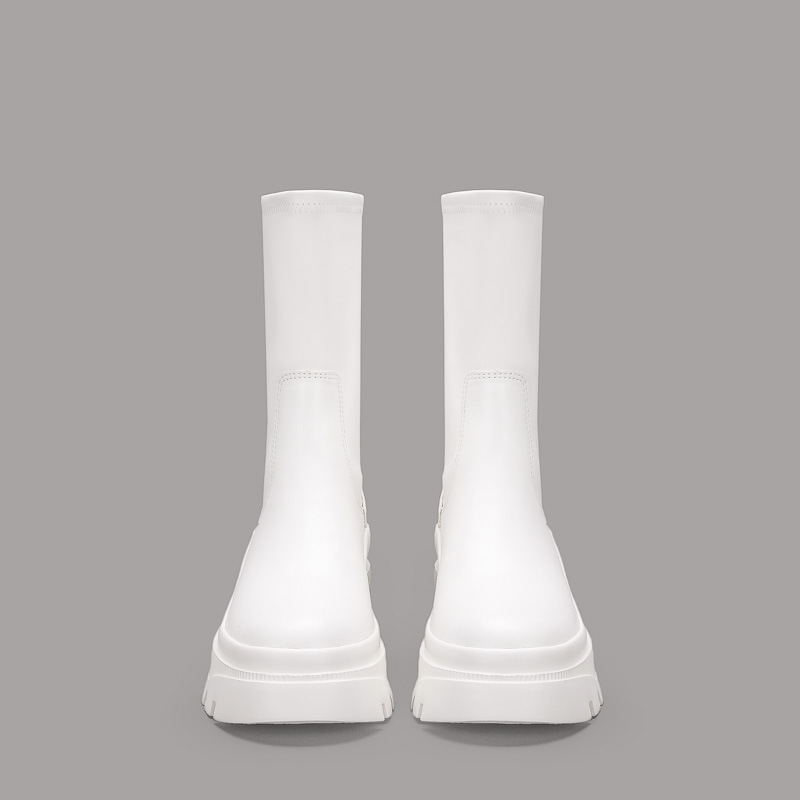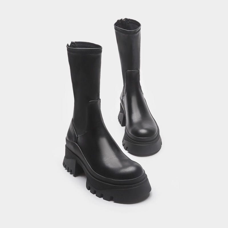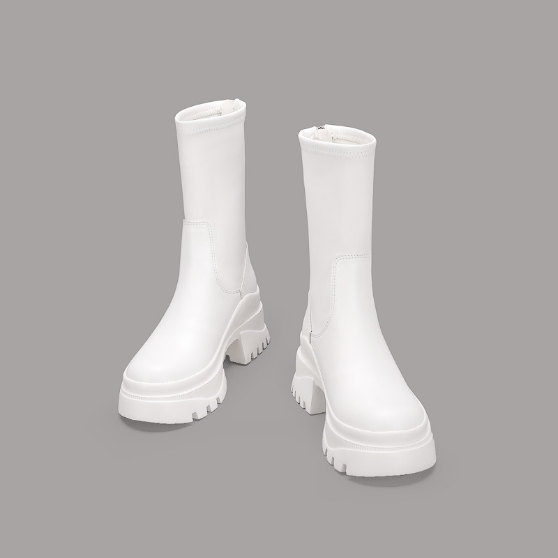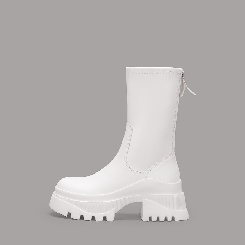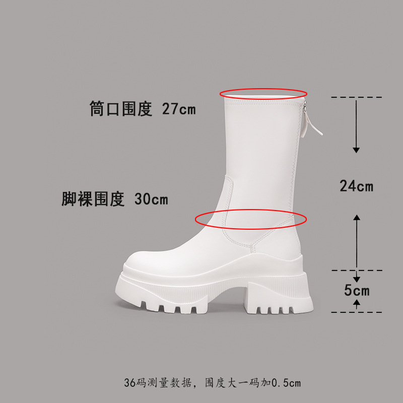2022 새로운 국경 대외 무역 짧은 부츠 여성 두꺼운 바닥 그루브 패턴 바닥 중간 튜브 탄성 부츠 뒤 지퍼 마틴 부츠