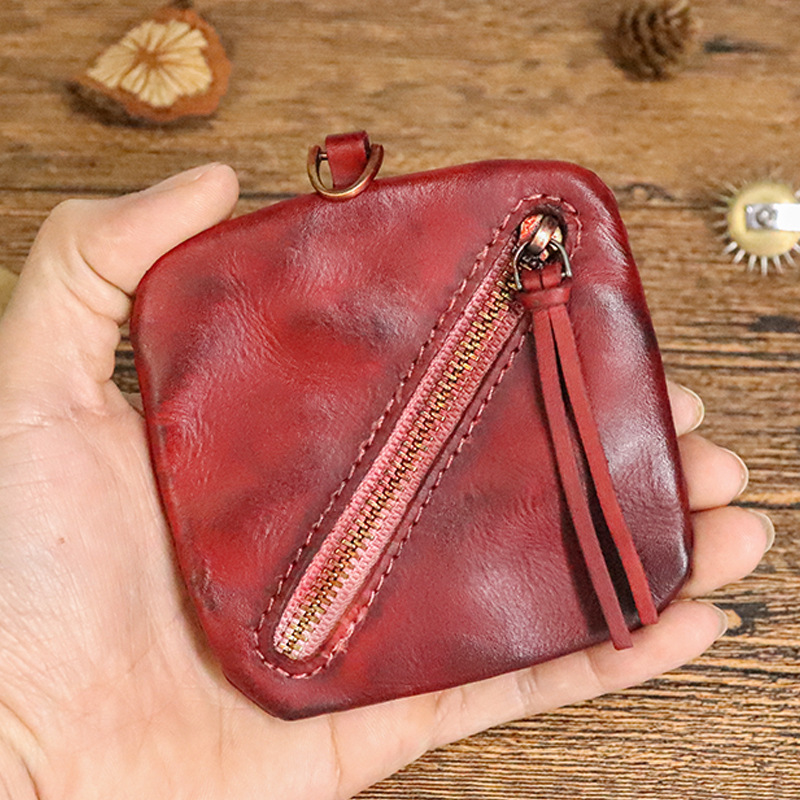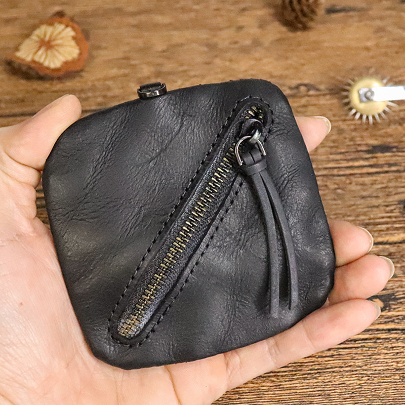 탑 레이어 소가죽 야채 무두질 가죽 동전 지갑 여성용 빈티지 이어폰 가방 여성용 심플 소형 지퍼 동전 가방 보관 가방스토어 가기