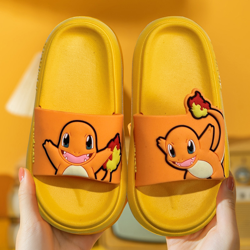 Baokemeng 여름 만화 피카츄 어린이 슬리퍼 남성과 여성의 부모-자식 신발 슬립온 샌들 미끄럼 방지 캐주얼 도매