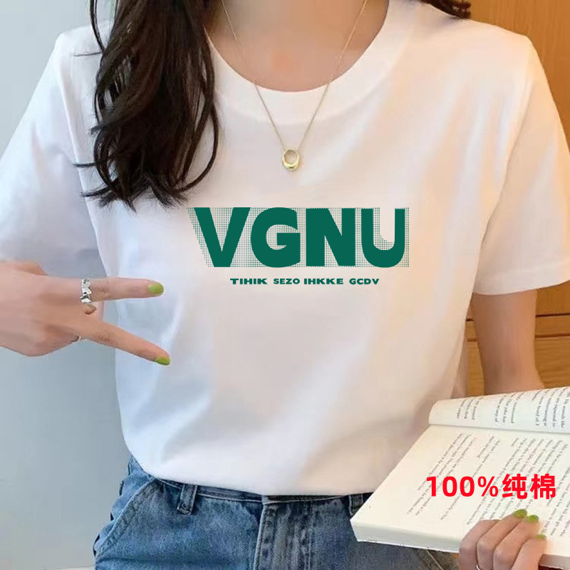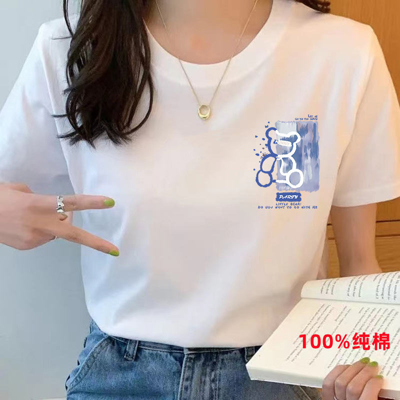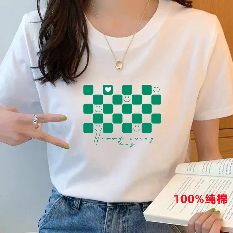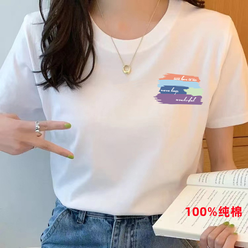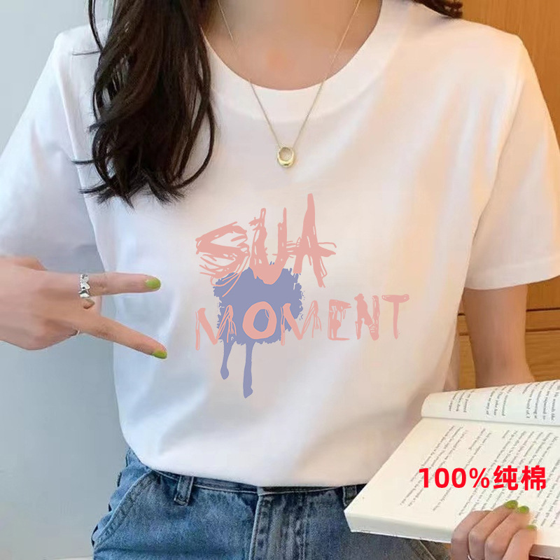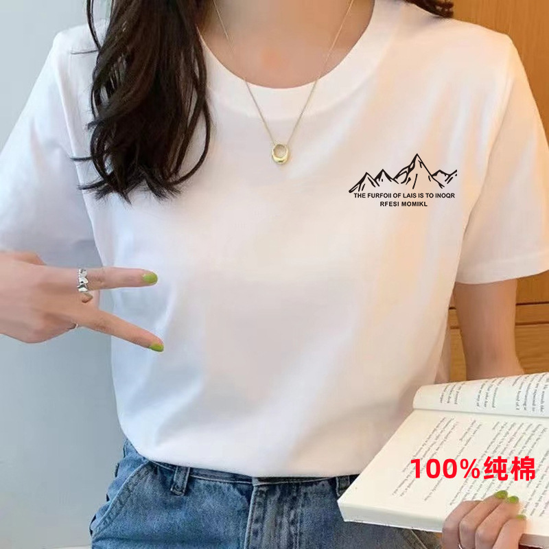 2026년 여름 신상 심플 캐주얼 여성복 순면 반팔 한국 스타일 라운드넥 프린트 여성 티셔츠 도매스토어 가기