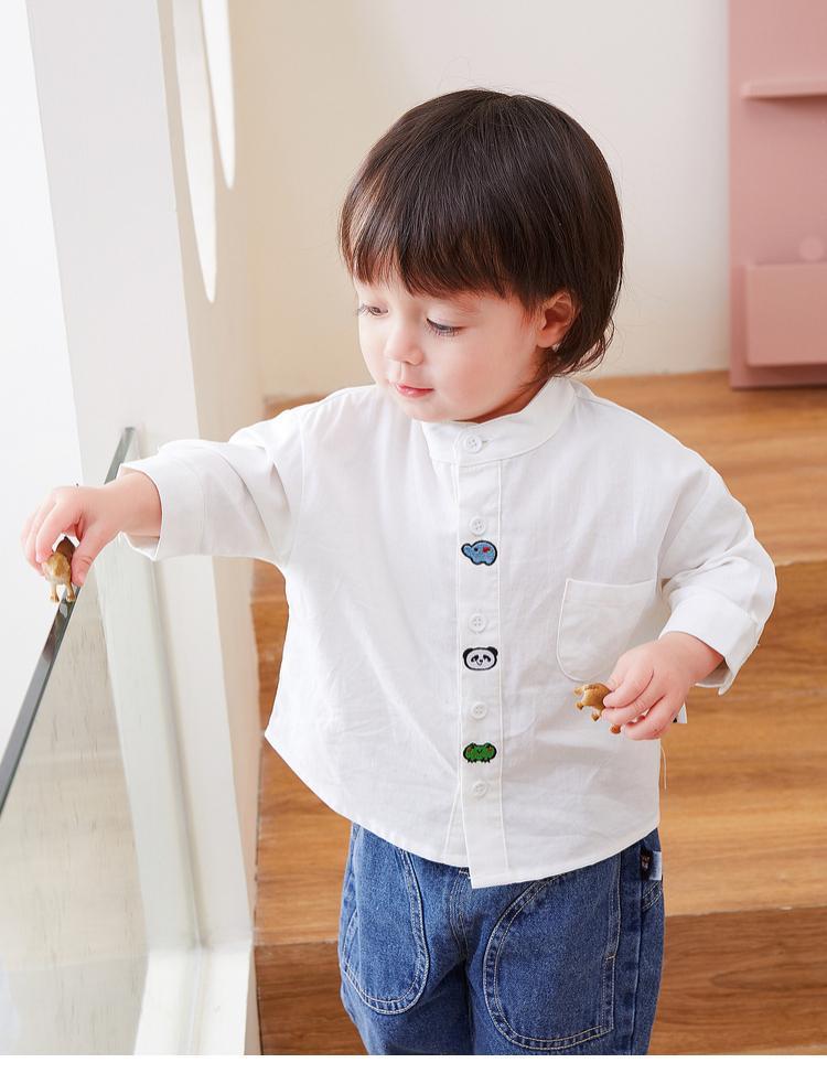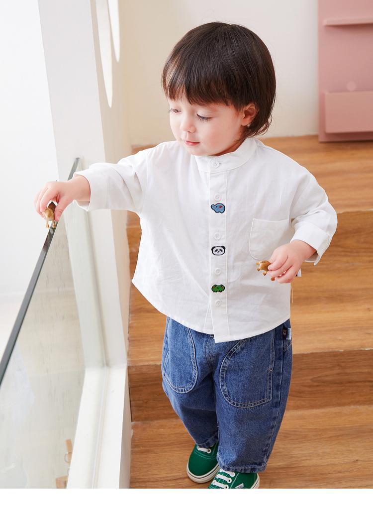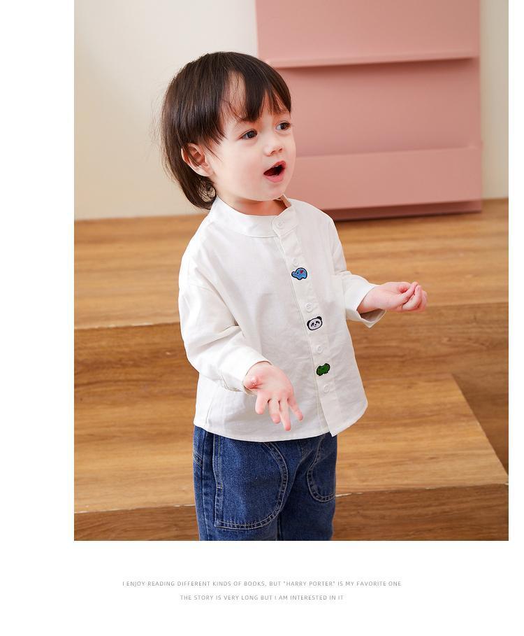 아기 흰색 셔츠 봄과 가을 아기 서양 스타일 새로운 탑 봄 소년의 순면 셔츠 봄 여성의 트렌디 한 아동 의류스토어 가기