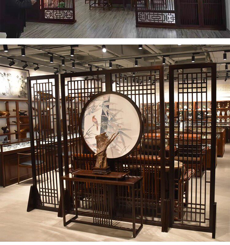 입구 입구 입구 찻집 중국어 스크린 파티션 거실 홈 대피소 사무실 공부방 이동식 단단한 나무 스크린스토어 가기