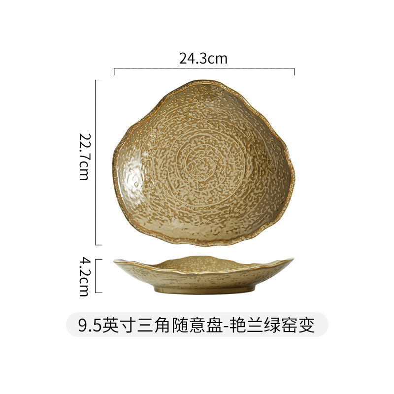 • 9.5 인치 삼각형 랜덤 플레이트-Yanlan 녹색 가마 변경