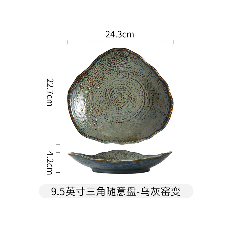 • 9.5 인치 삼각형 랜덤 플레이트-블랙 애쉬 가마 변형