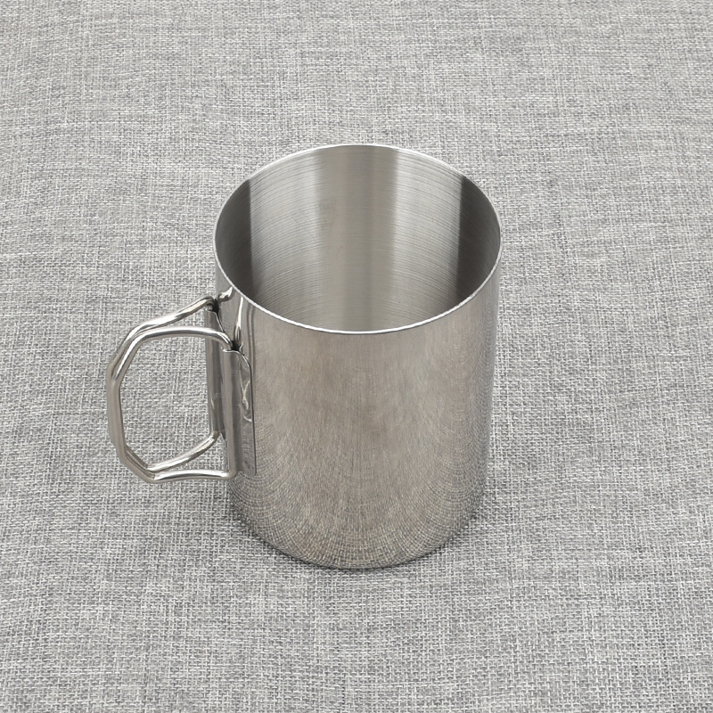도매 접이식 컵 휴대용 야외 등반 컵 단일 레이어 추가 두꺼운 스테인레스 스틸 워터 컵 이동식 핸들 대용량