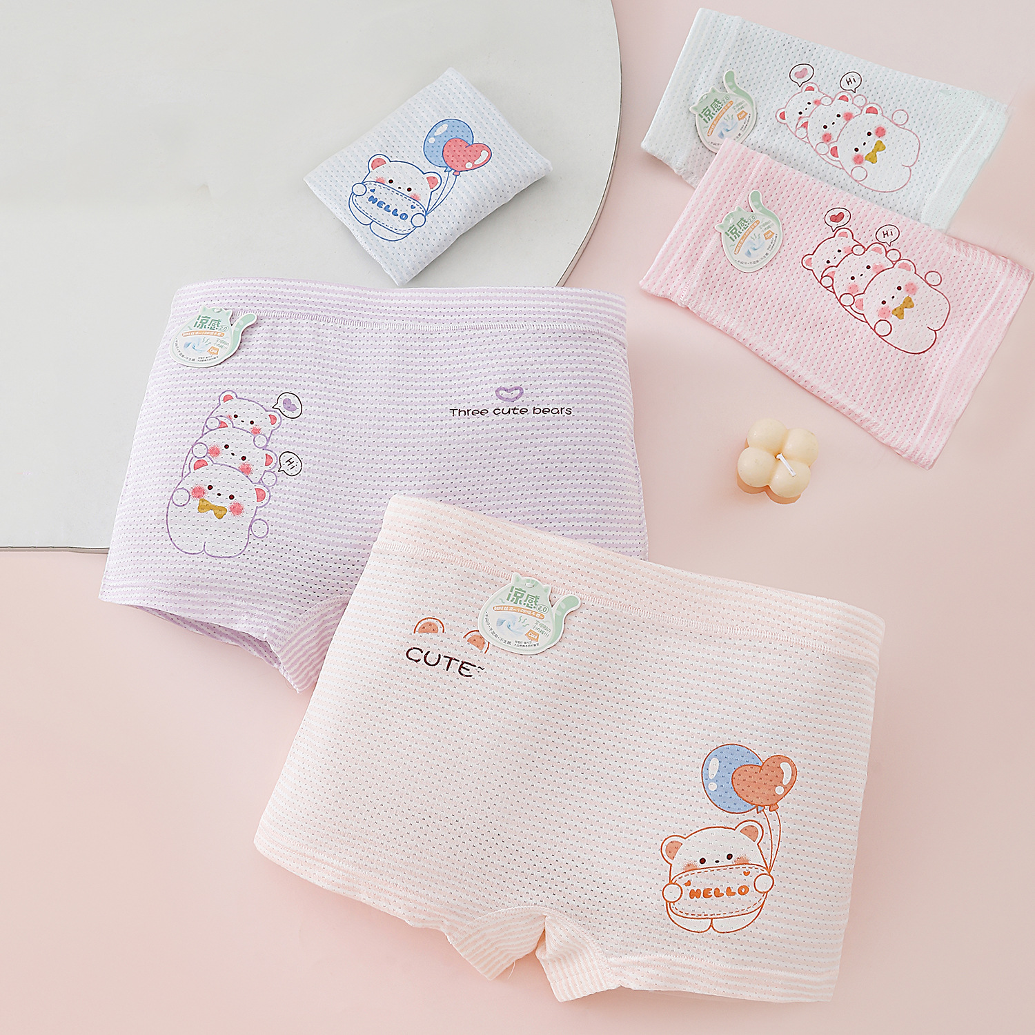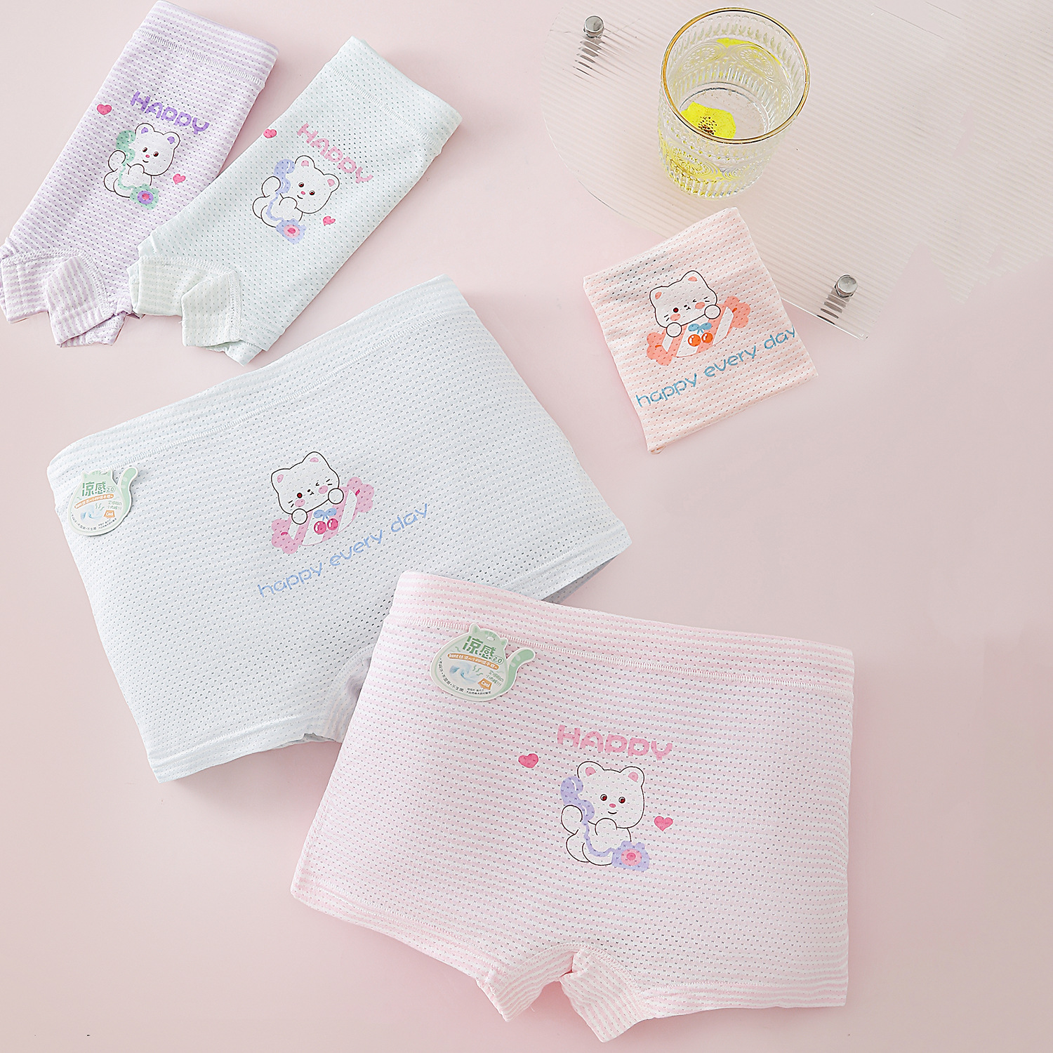Aizou 소년 여름 모달 메쉬 통기성 구멍 소녀 복서 팬티 어린 소녀 복서 팬티 반바지 2025