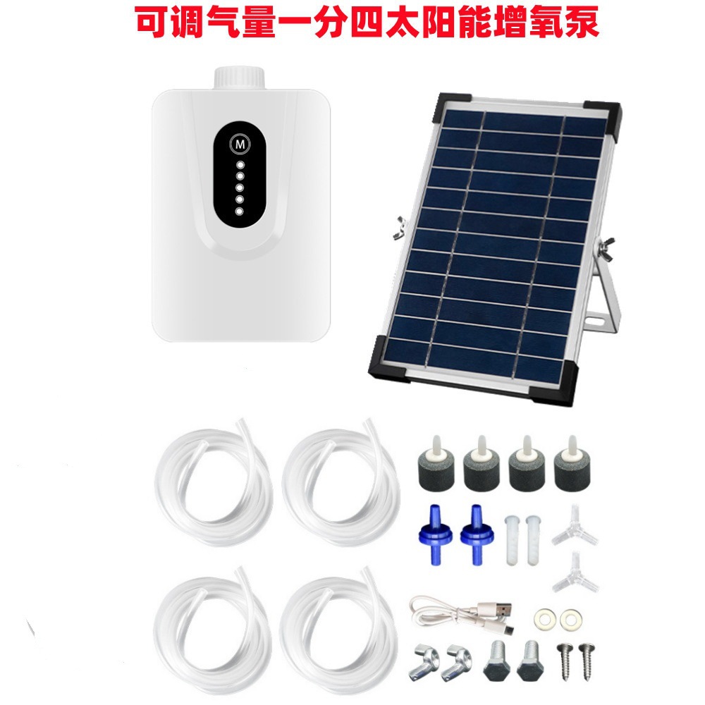 将气泡石与排气孔连接后放入需要增氧的水体中,太阳能电池板向着太阳光,太阳能电池板与太阳光之间无遮挡物,按下POWER开关,增氧泵即开始工作。