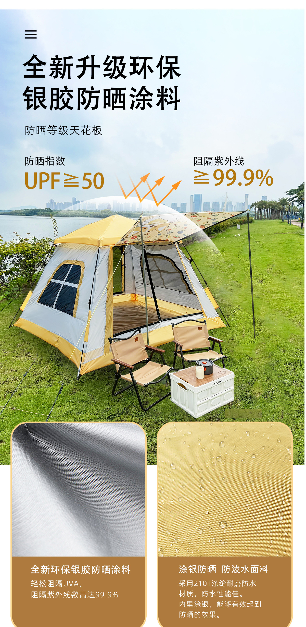• 스몰 클라우드 그레이 퀵 오픈 텐트 210*210*150cm