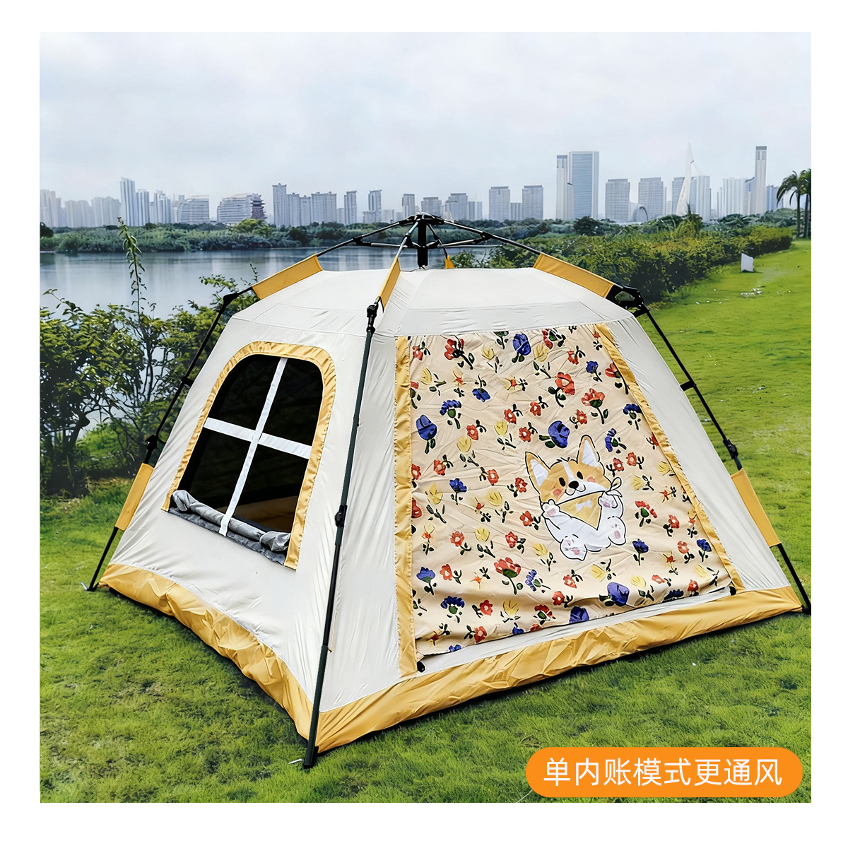 텐트 파크 1-2인용 초간편 자동 어린이 캠핑 텐트 귀여운 꽃무늬 야외 자외선 차단 휴대용 빠른 설치스토어 가기