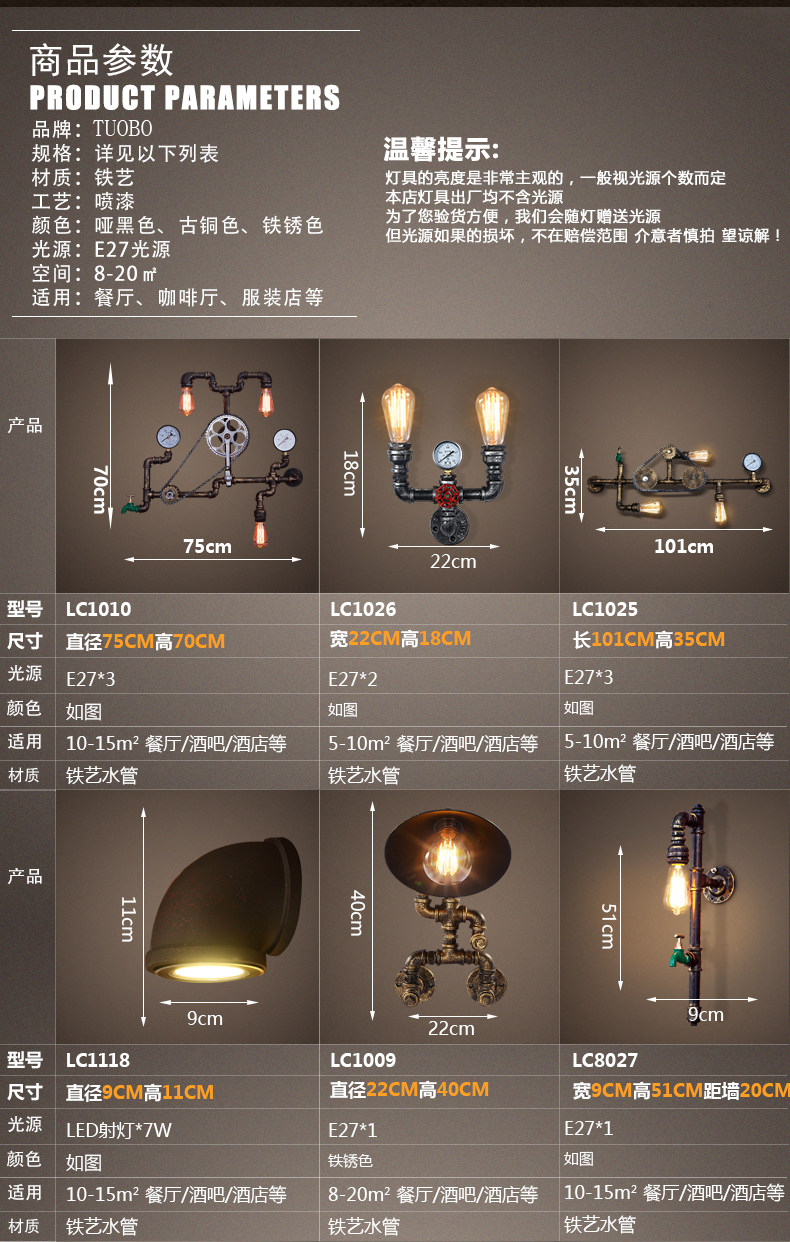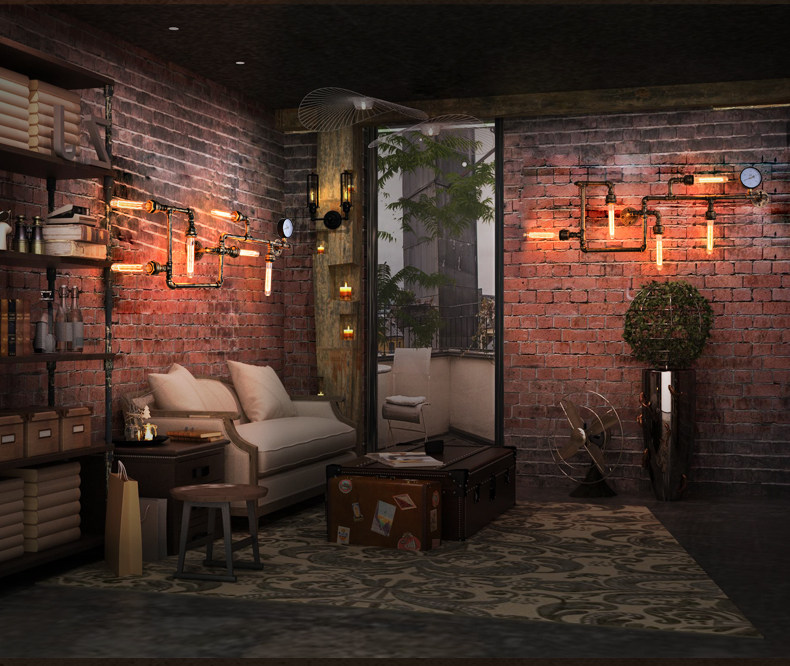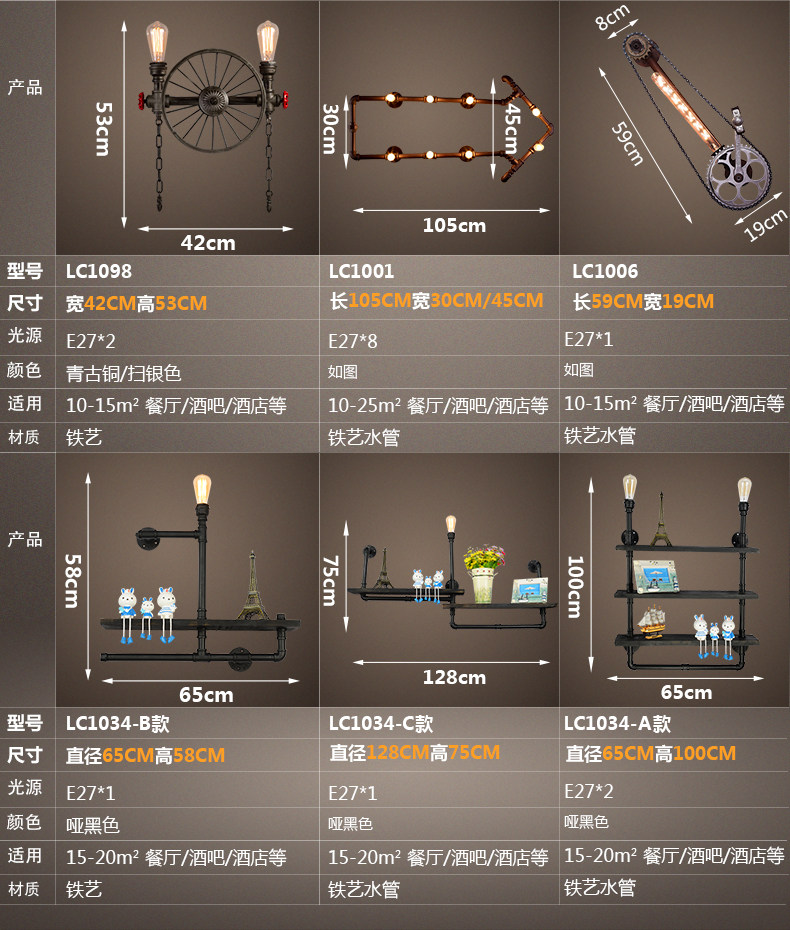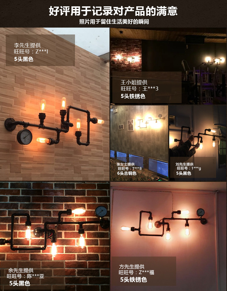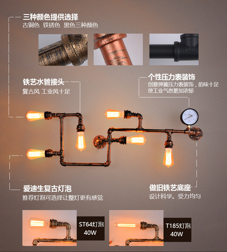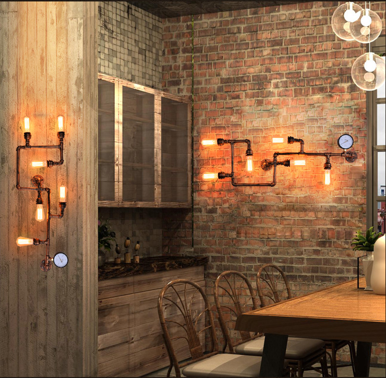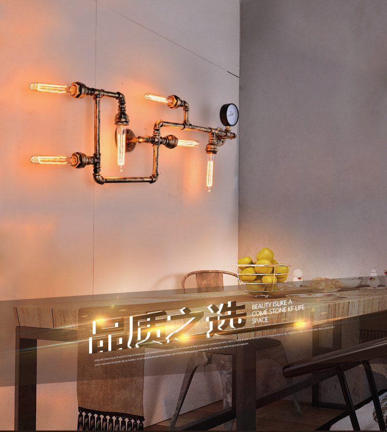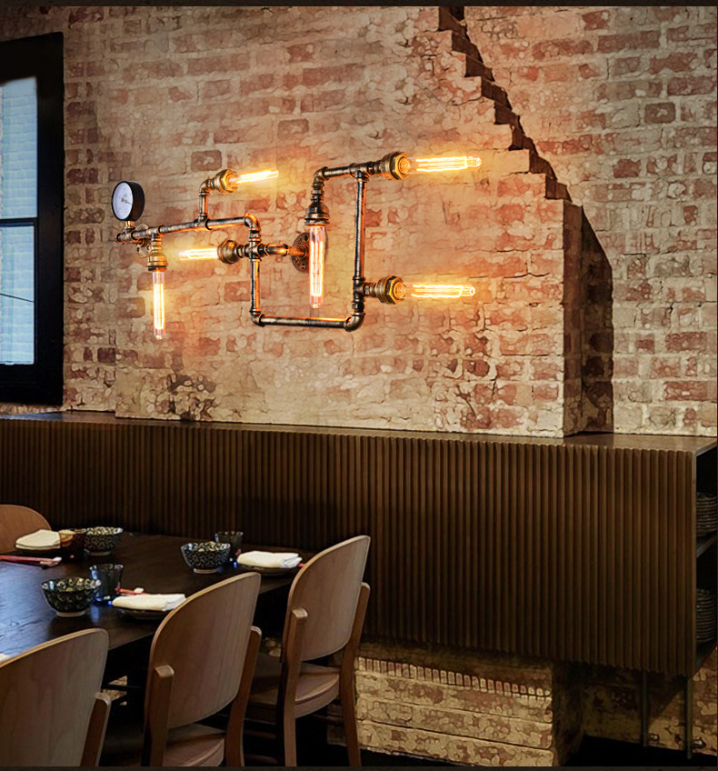 카페 바 미국 발코니 복고풍 로프트 산업 스타일 철 장식 수도관 벽 램프 맞춤형 기어 통로스토어 가기