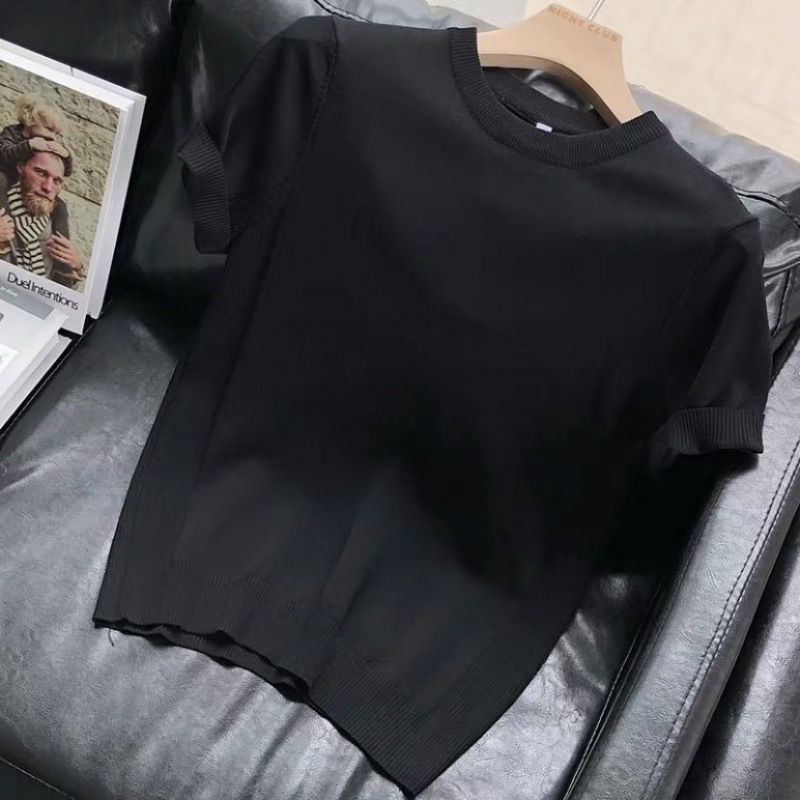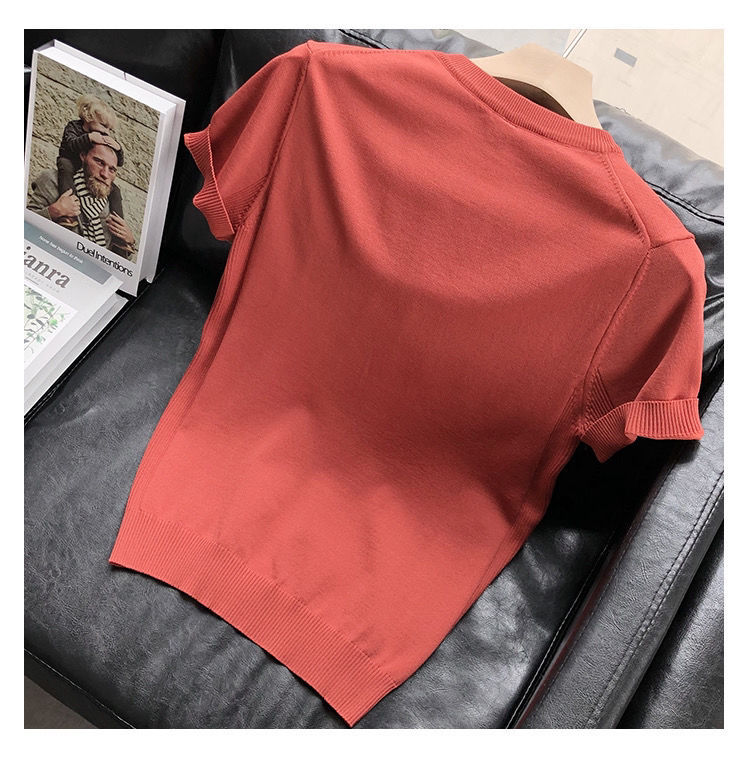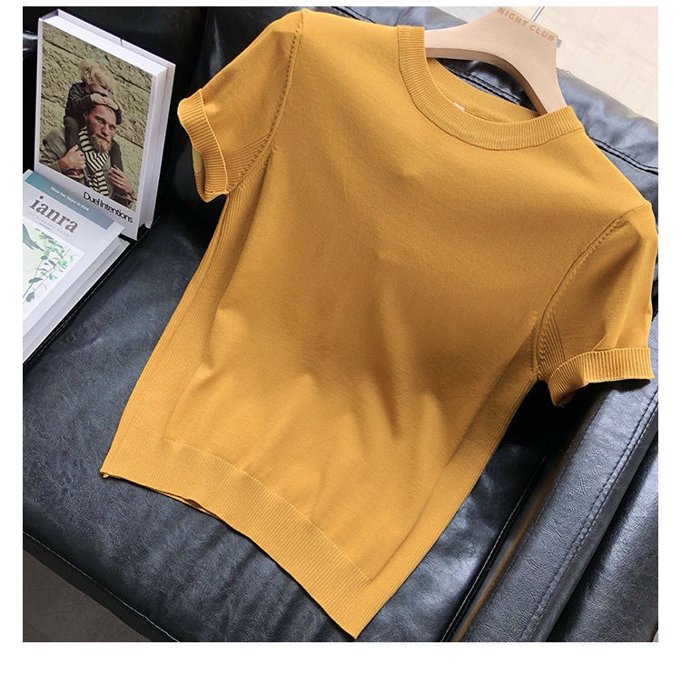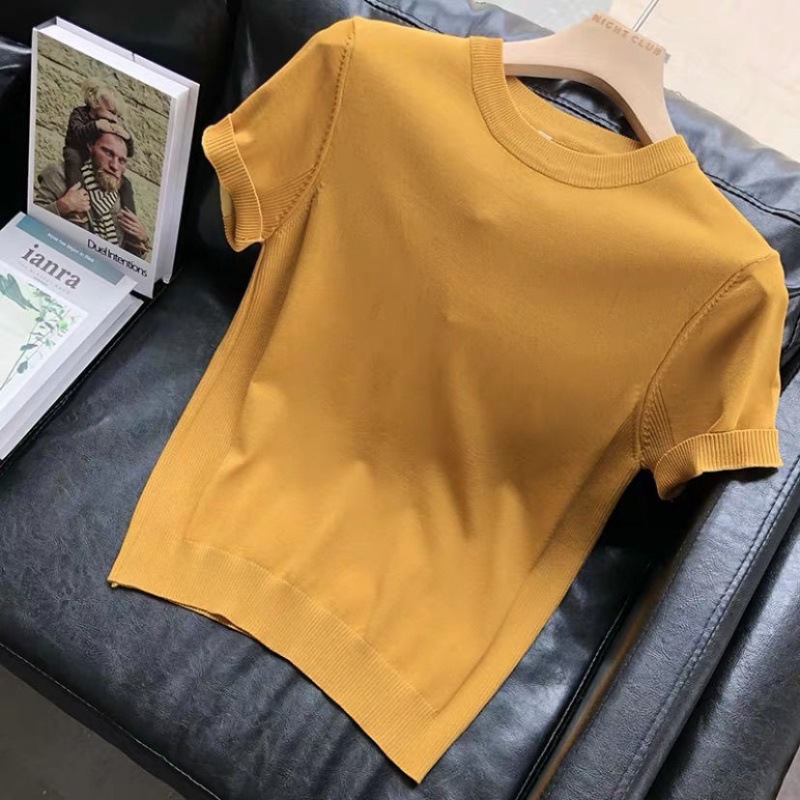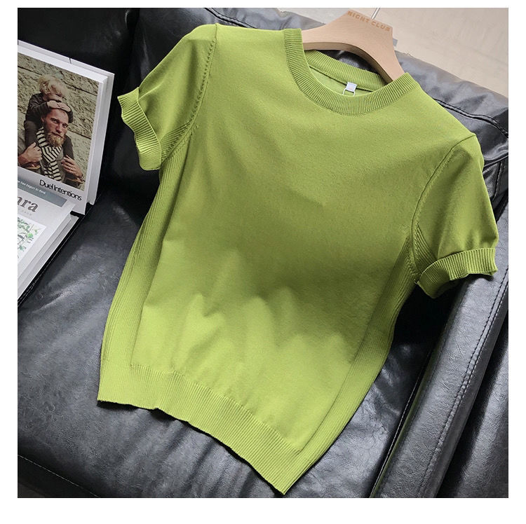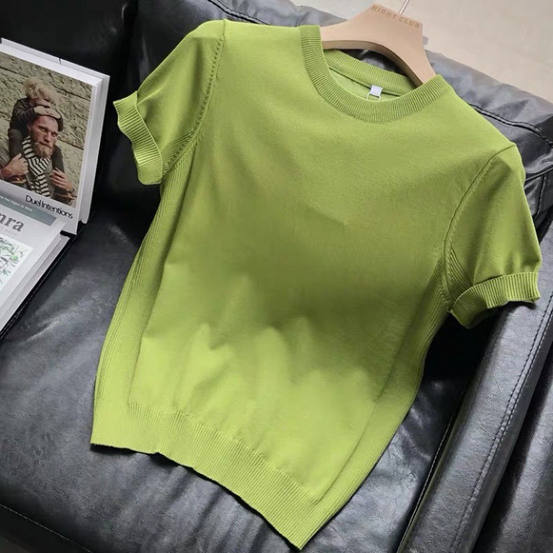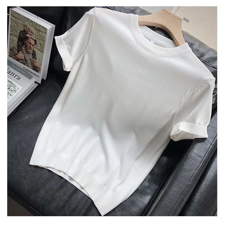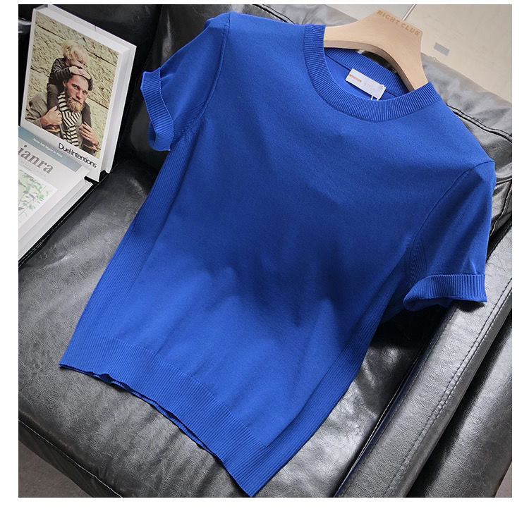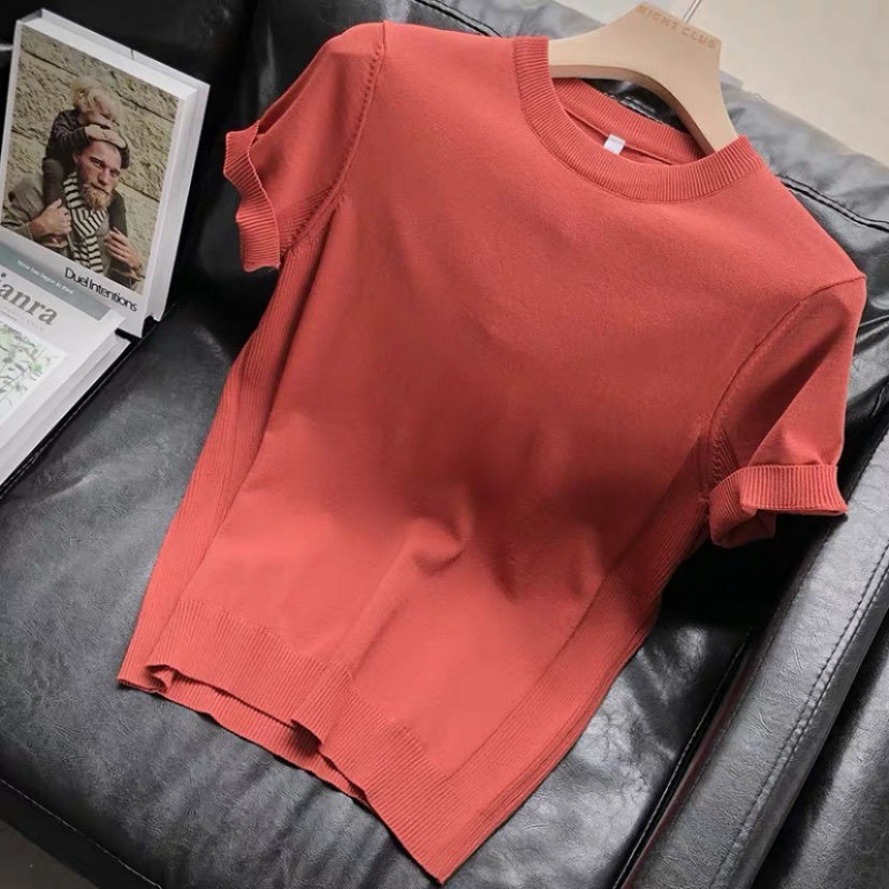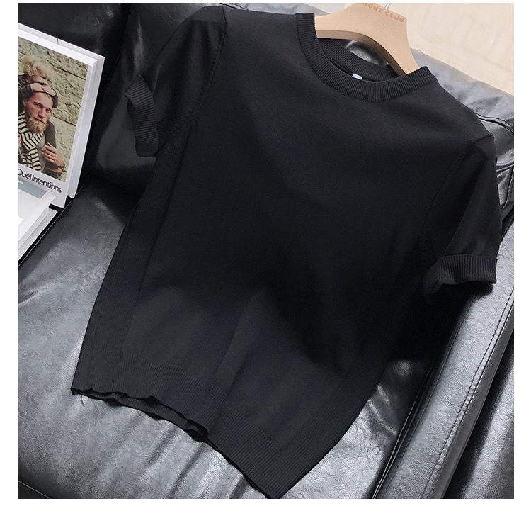 편안한 데일리 솔리드 컬러 반팔 남성 여름 라운드 넥 풀오버 슬림 티셔츠 스웨터 얇은 청소년 바닥 셔츠