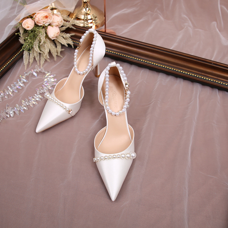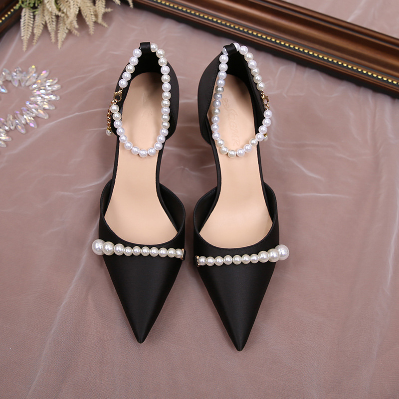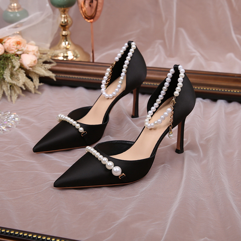 2023 새로운 중공 뾰족한 뒤꿈치 진주 버클 샌들 아름다운 하이힐 신발 여성 세대의 머리카락스토어 가기