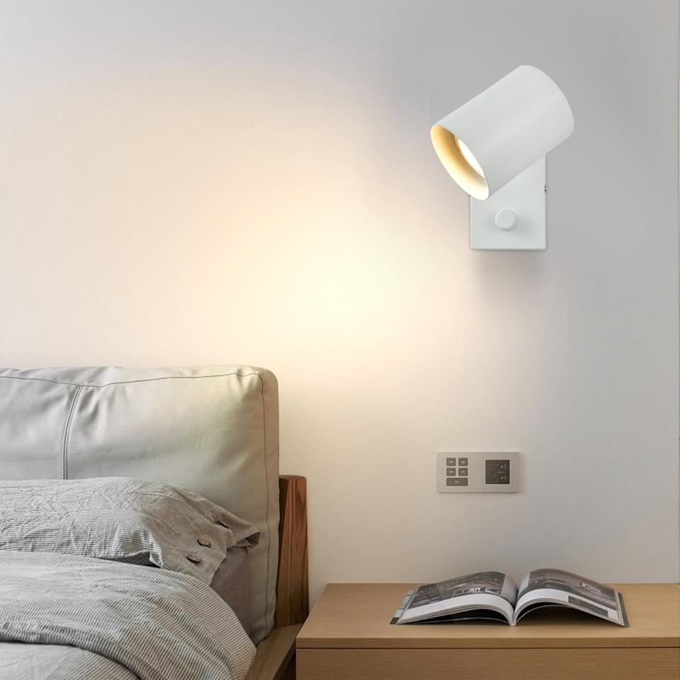 플러그 GU10 스포트라이트 거실 장식 램프가있는 현대 미니멀리스트 침대 옆 벽 램프 회전 각도 노브 스위치