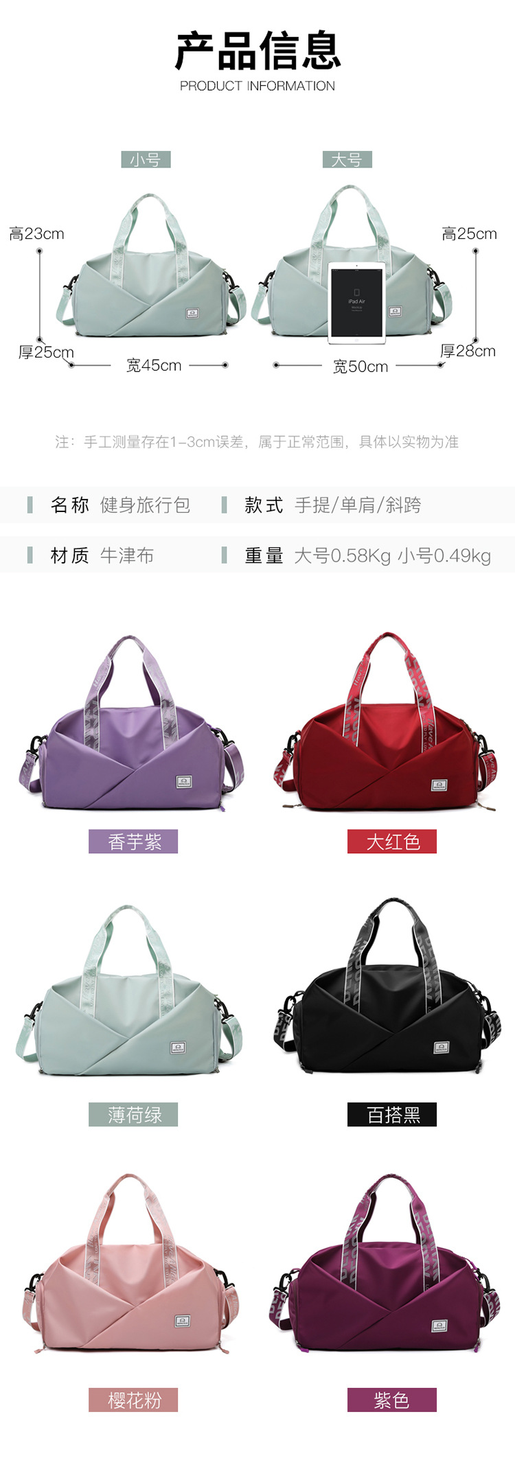피트니스 가방 여성용 건식 및 습식 분리 요가 가방 크로스바디 수영 스포츠 더플 백 대용량 휴대용 여행 가방 도매