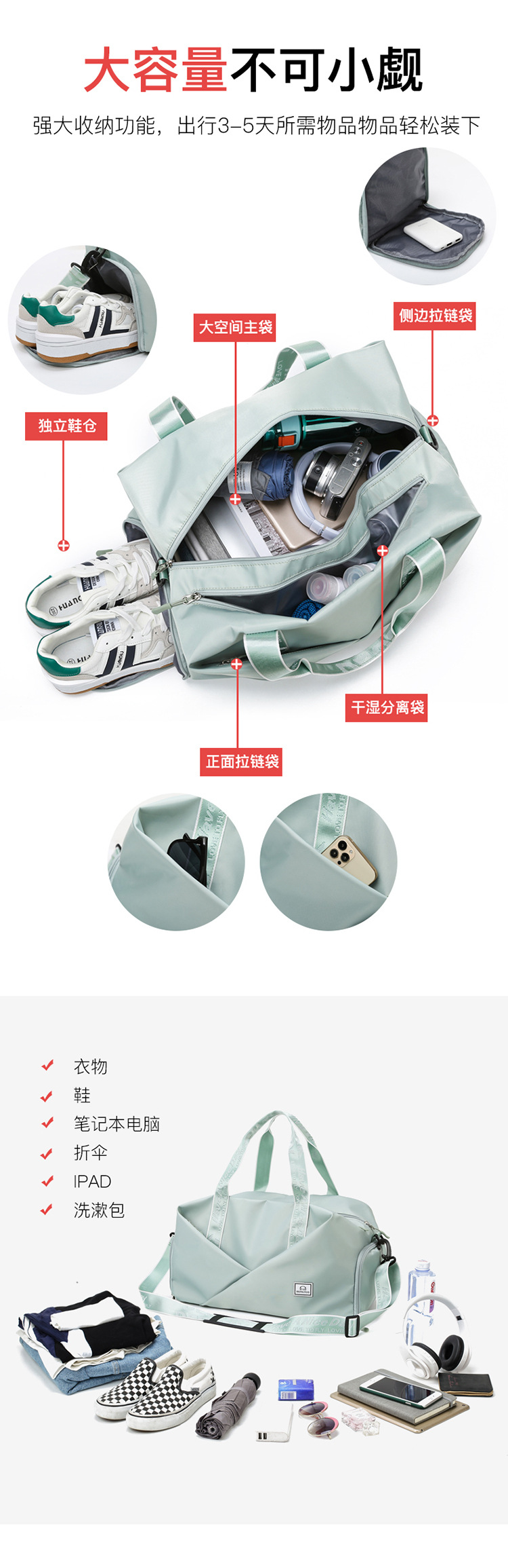 피트니스 가방 여성용 건식 및 습식 분리 요가 가방 크로스바디 수영 스포츠 더플 백 대용량 휴대용 여행 가방 도매스토어 가기