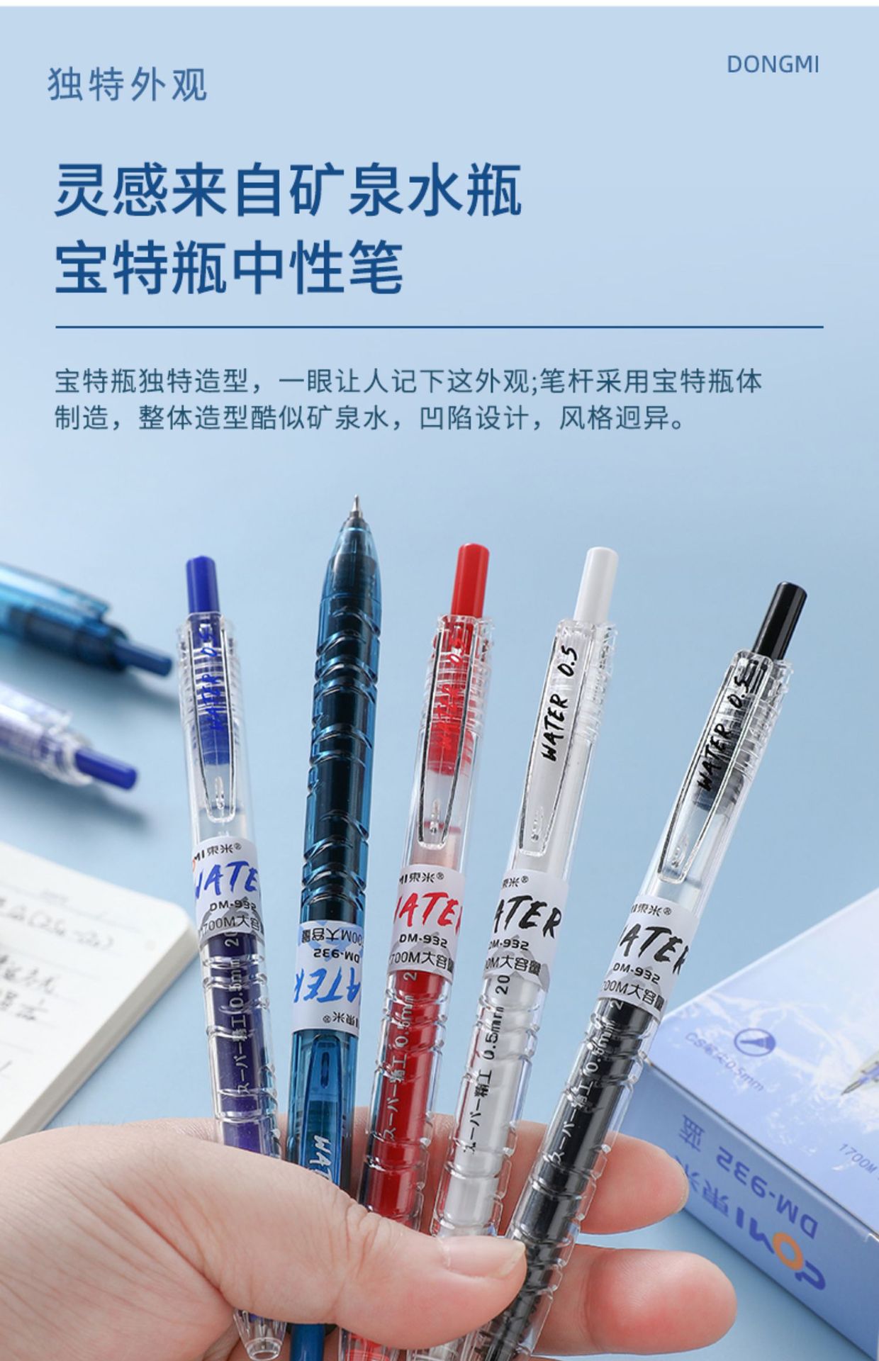 东米932刷题笔按动中性笔CS大容量宝特矿泉水瓶考试用0.5速干黑笔