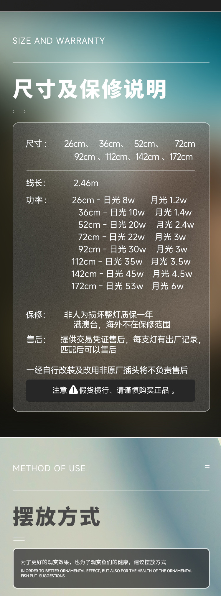 • 장식용 어류용 일반 램프 112CM [35w]