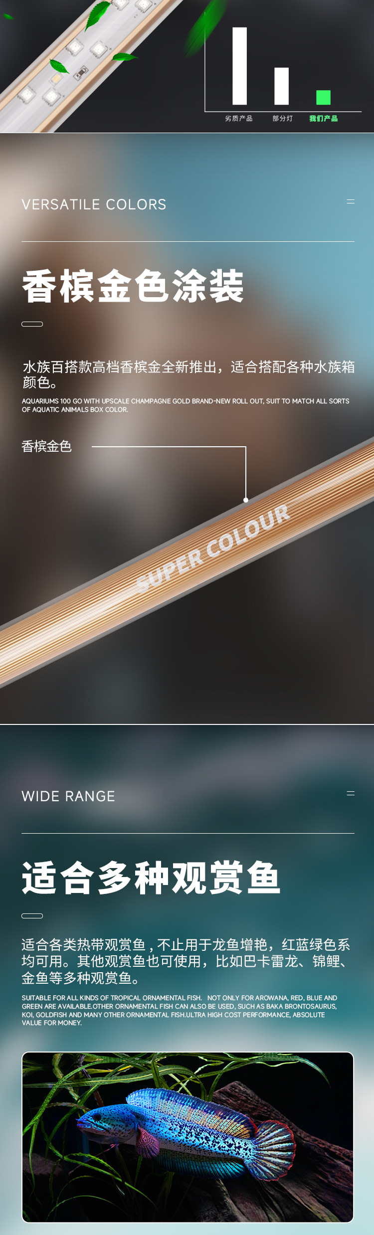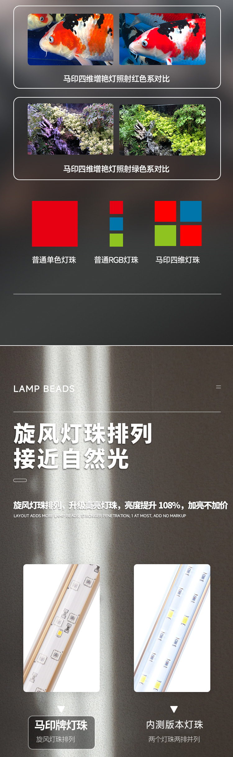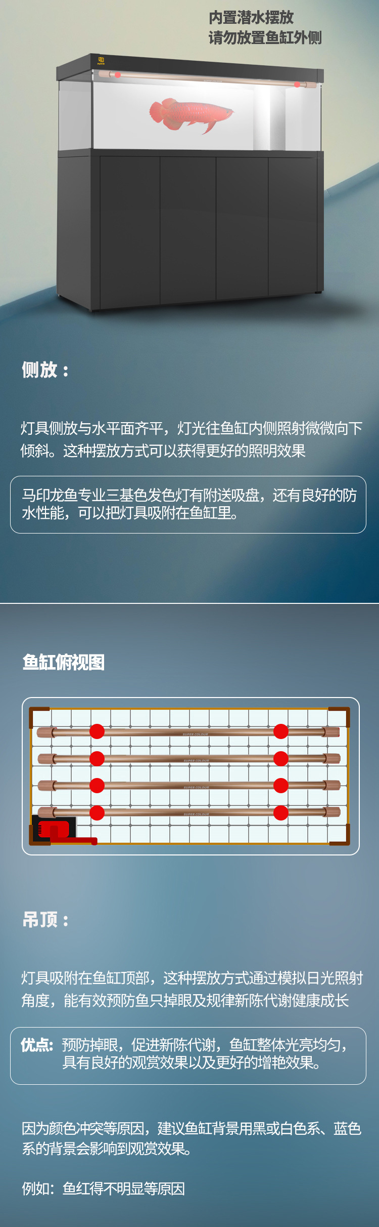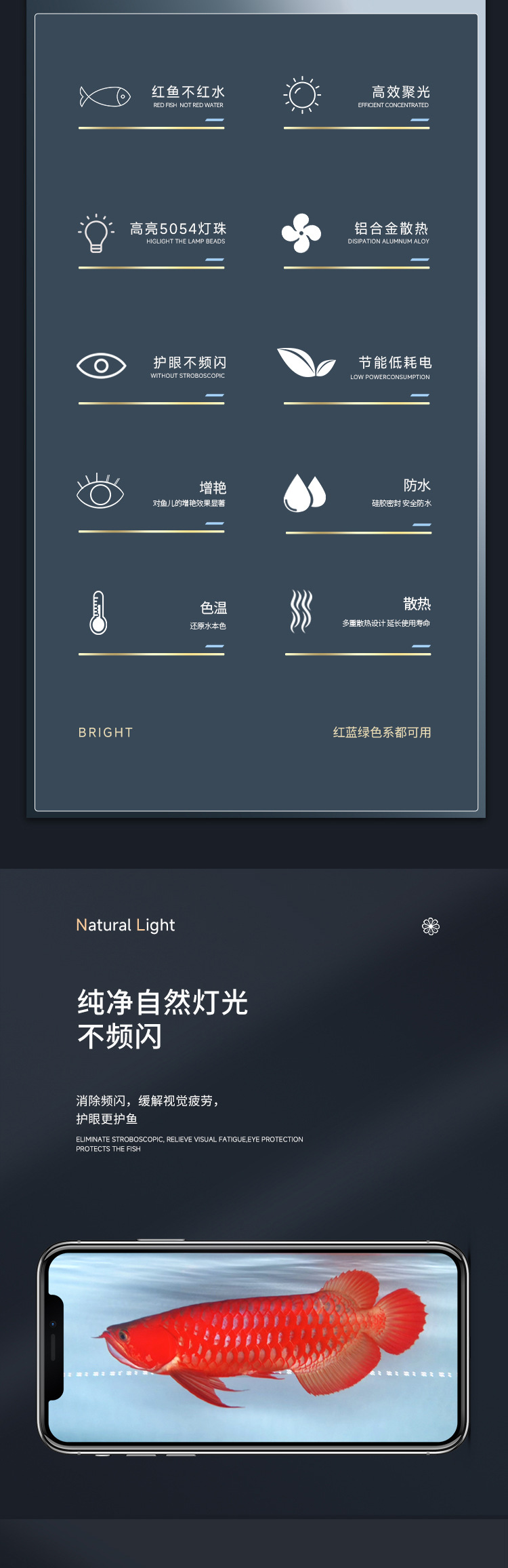 마인드 램프 PLUS 삼색 아로와나 특수 램프, 아로와나 물고기 방수 LED 수조 램프 레오노르