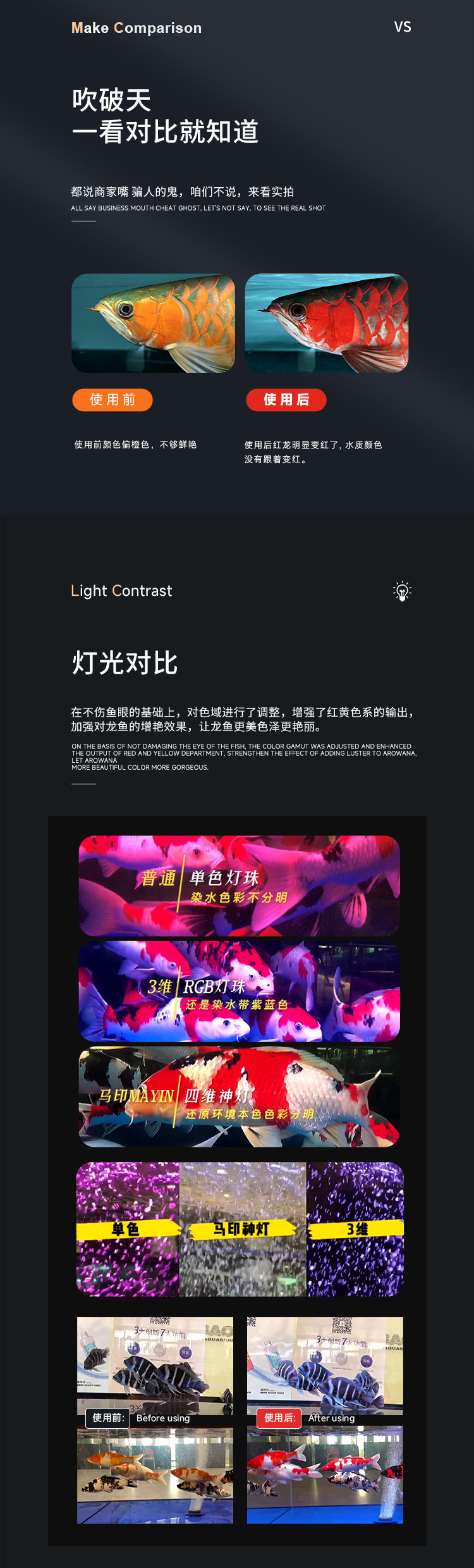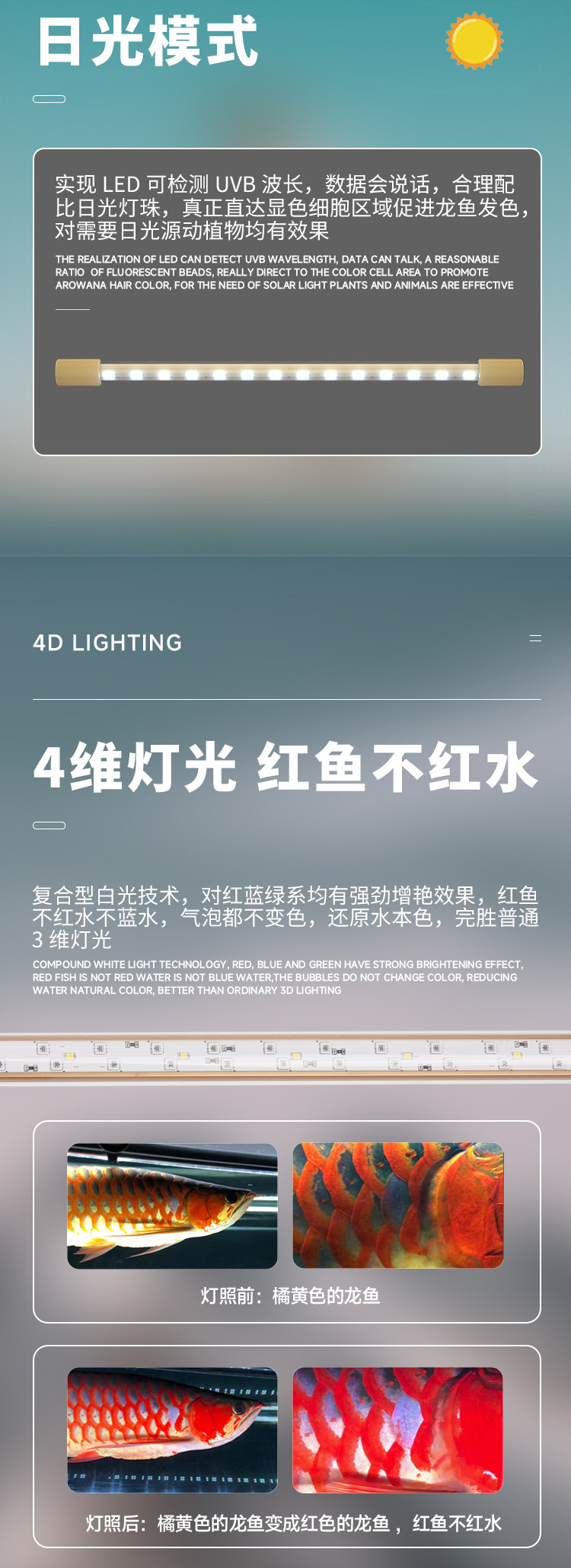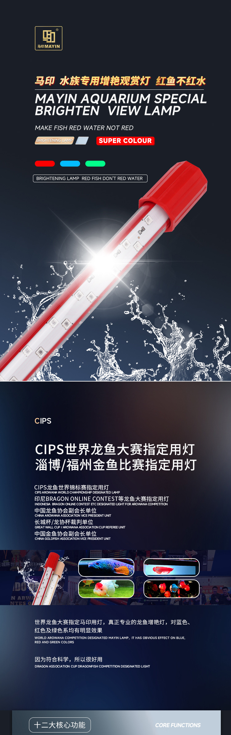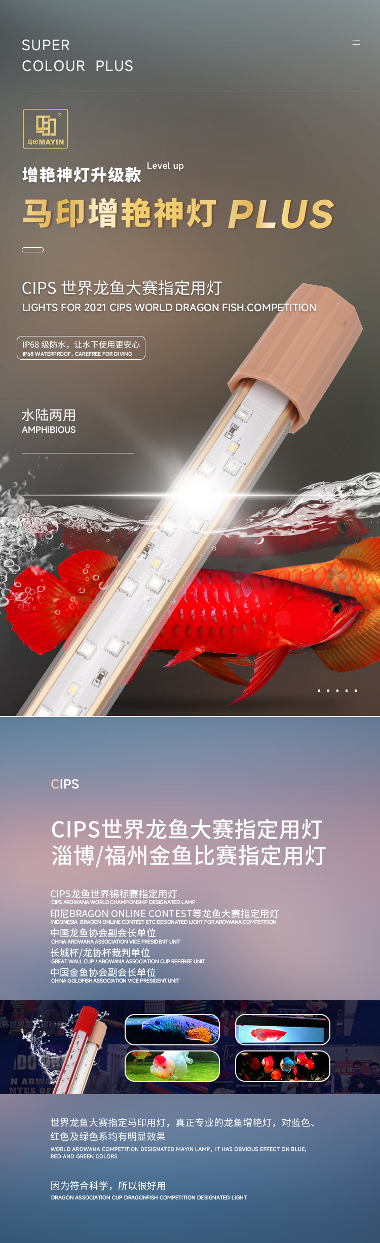마인드 램프 PLUS 삼색 아로와나 특수 램프, 아로와나 물고기 방수 LED 수조 램프 레오노르스토어 가기