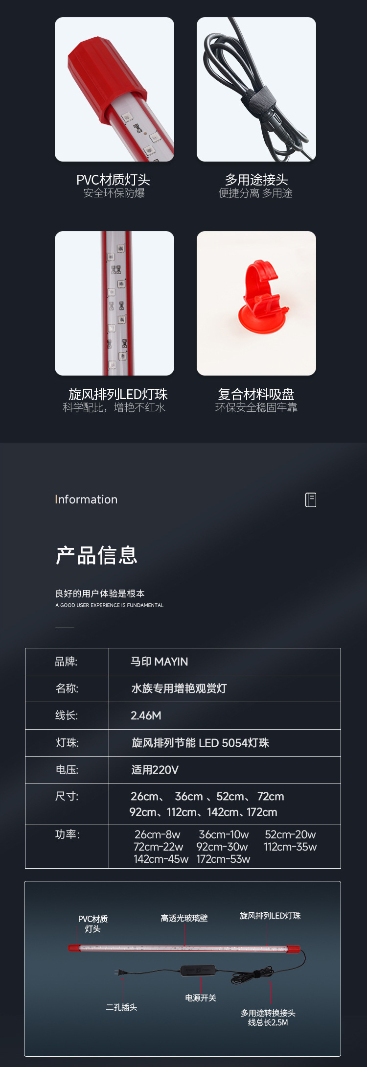 • 장식용 어류용 일반 램프 172CM [53w]