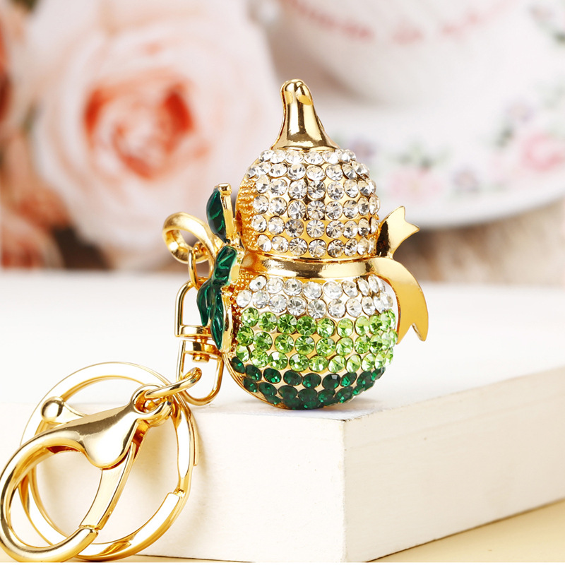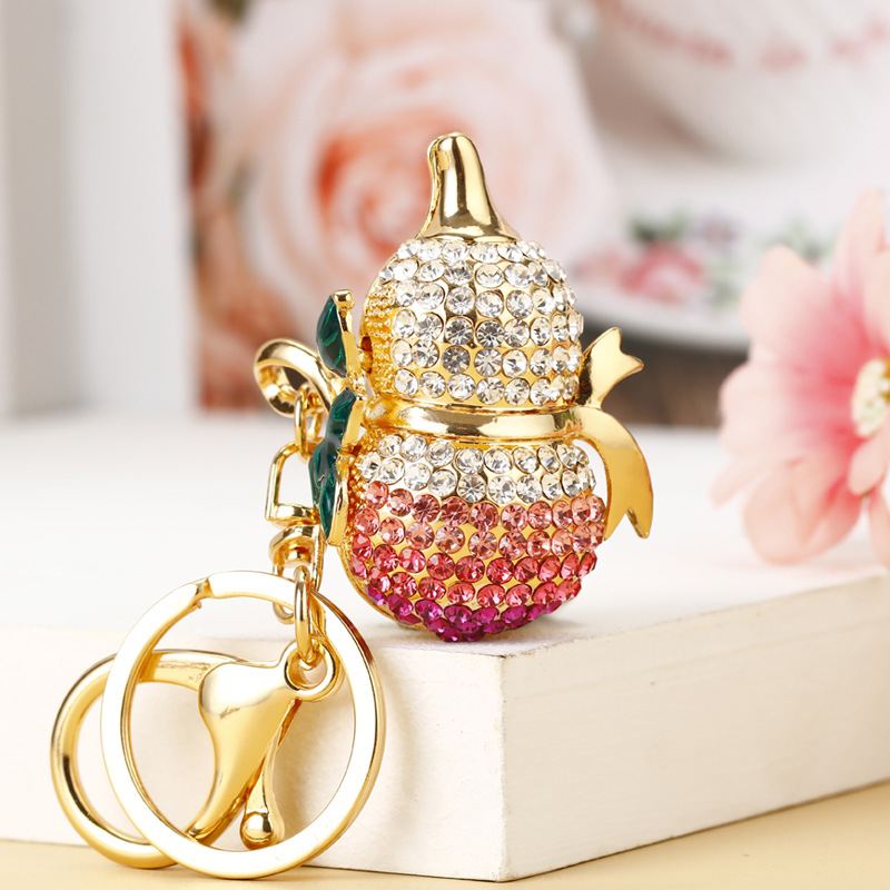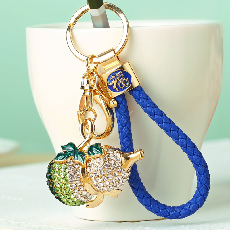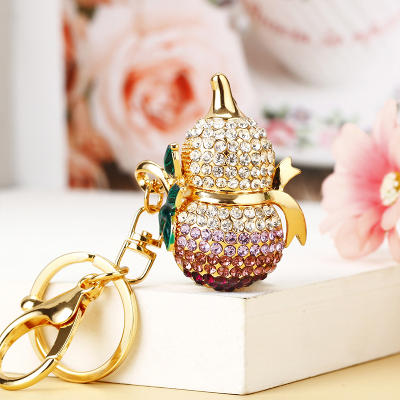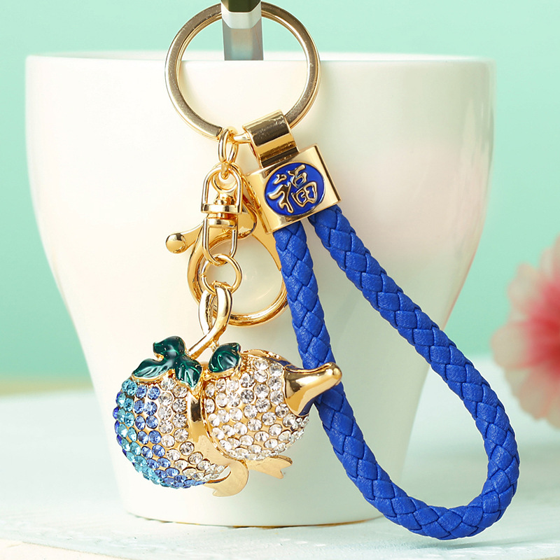 중국 스타일 창조적 인 귀여운 행운의 그라디언트 컬러 모조 다이아몬드 조롱박 키 체인 자동차 가방 펜던트 합금 키 체인스토어 가기