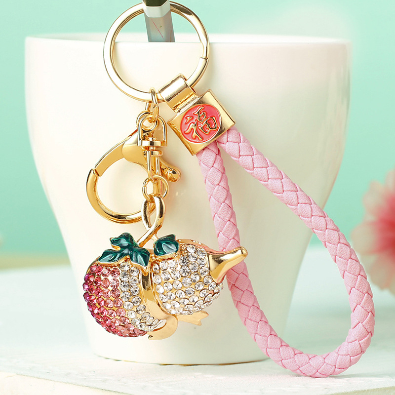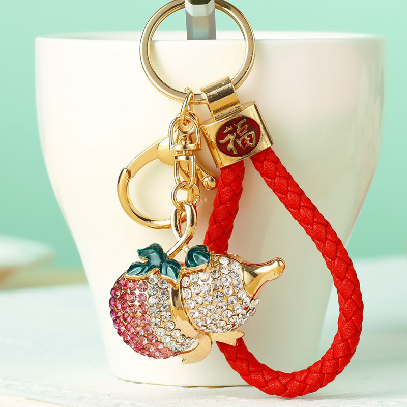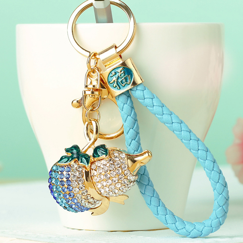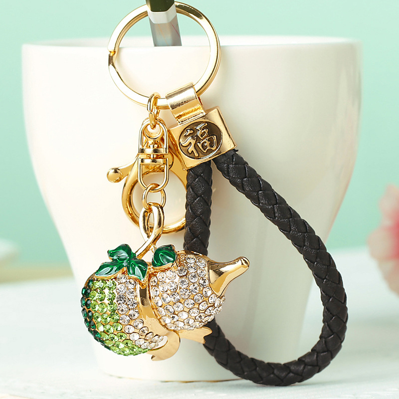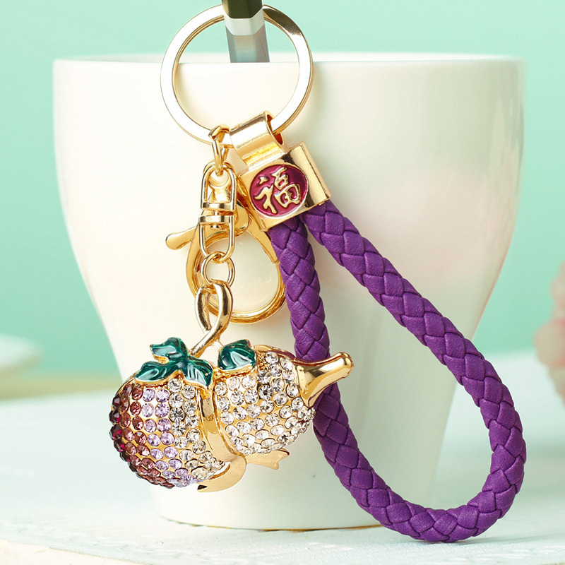 중국 스타일 창조적 인 귀여운 행운의 그라디언트 컬러 모조 다이아몬드 조롱박 키 체인 자동차 가방 펜던트 합금 키 체인스토어 가기