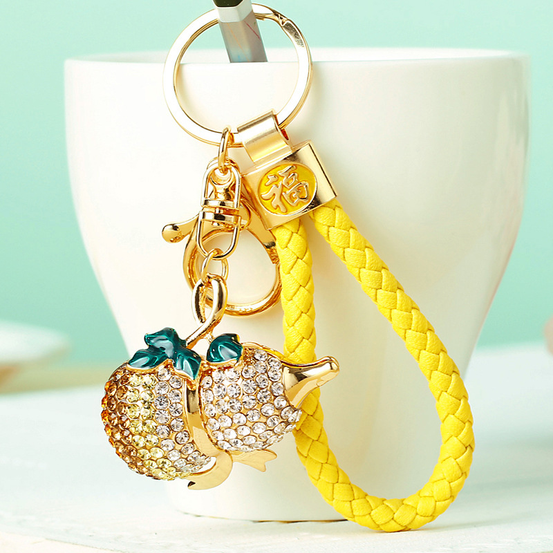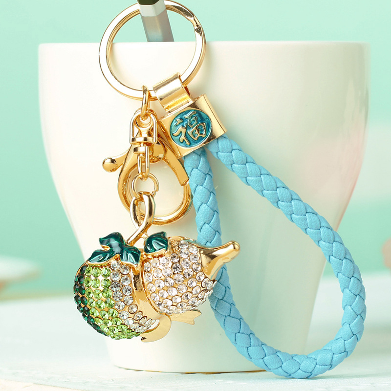 중국 스타일 창조적 인 귀여운 행운의 그라디언트 컬러 모조 다이아몬드 조롱박 키 체인 자동차 가방 펜던트 합금 키 체인