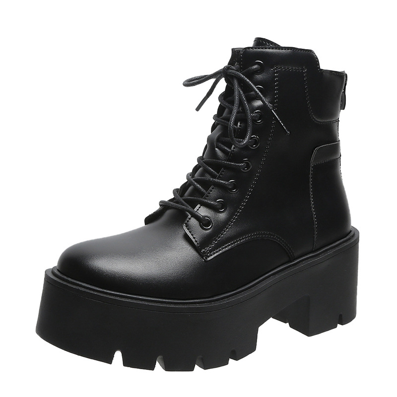 패션 레이스 업 마틴 부츠 여성의 2022 이른 가을 새로운 인터넷 축하 두꺼운 뒤꿈치 두꺼운 바닥 오토바이 부츠 마틴 부츠 재고스토어 가기
