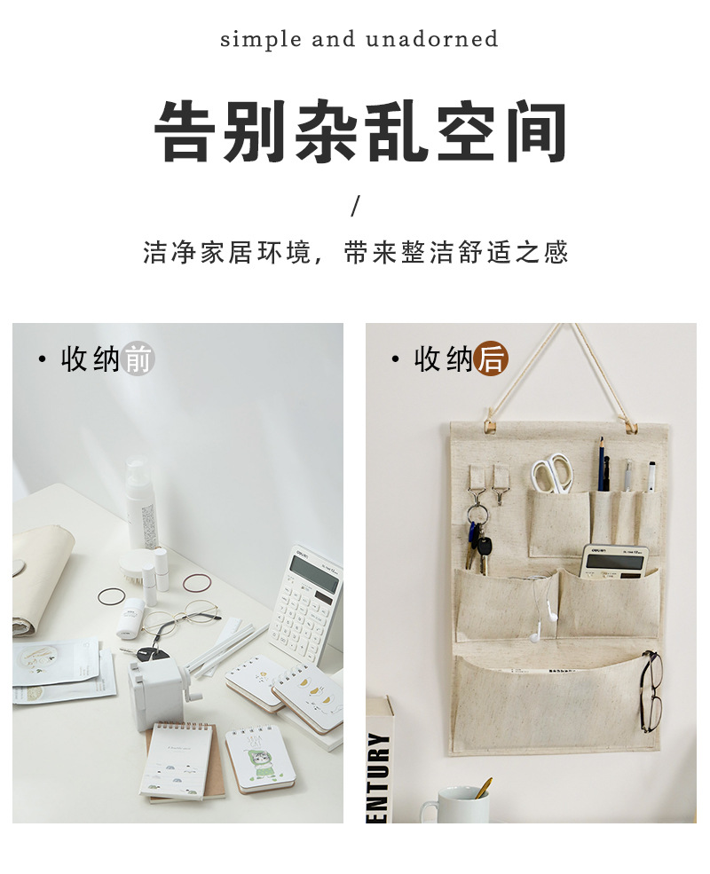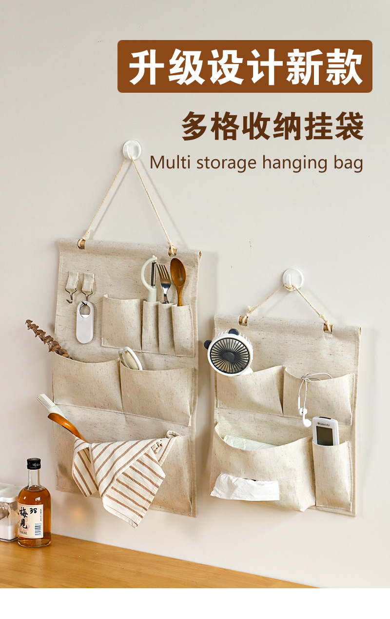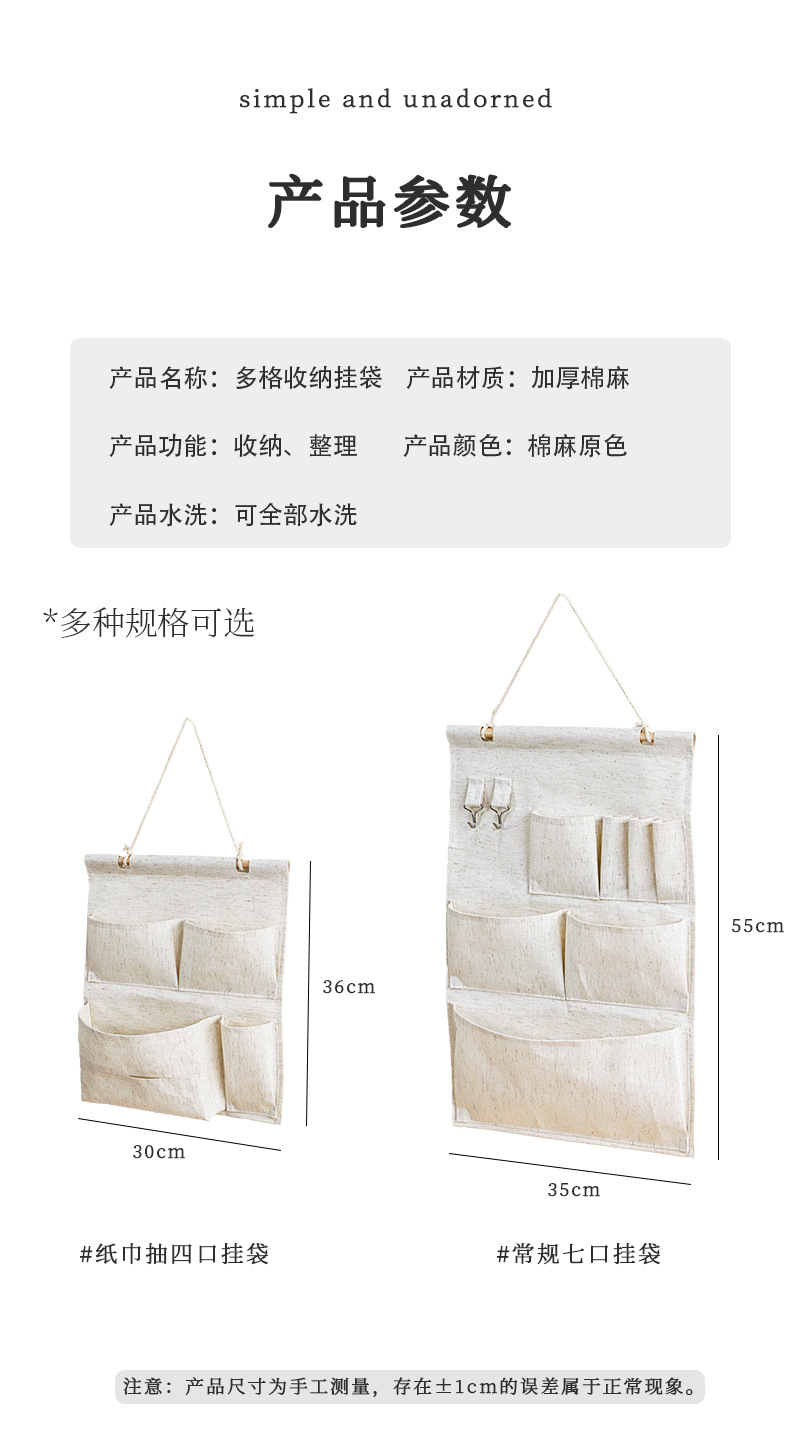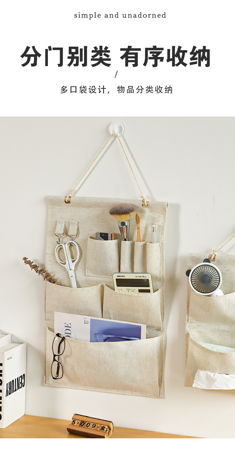 간단한 인쇄되지 않은 면 및 린넨 패브릭 홈 기숙사 도어 벽걸이 형 보관 가방 공장 도매
