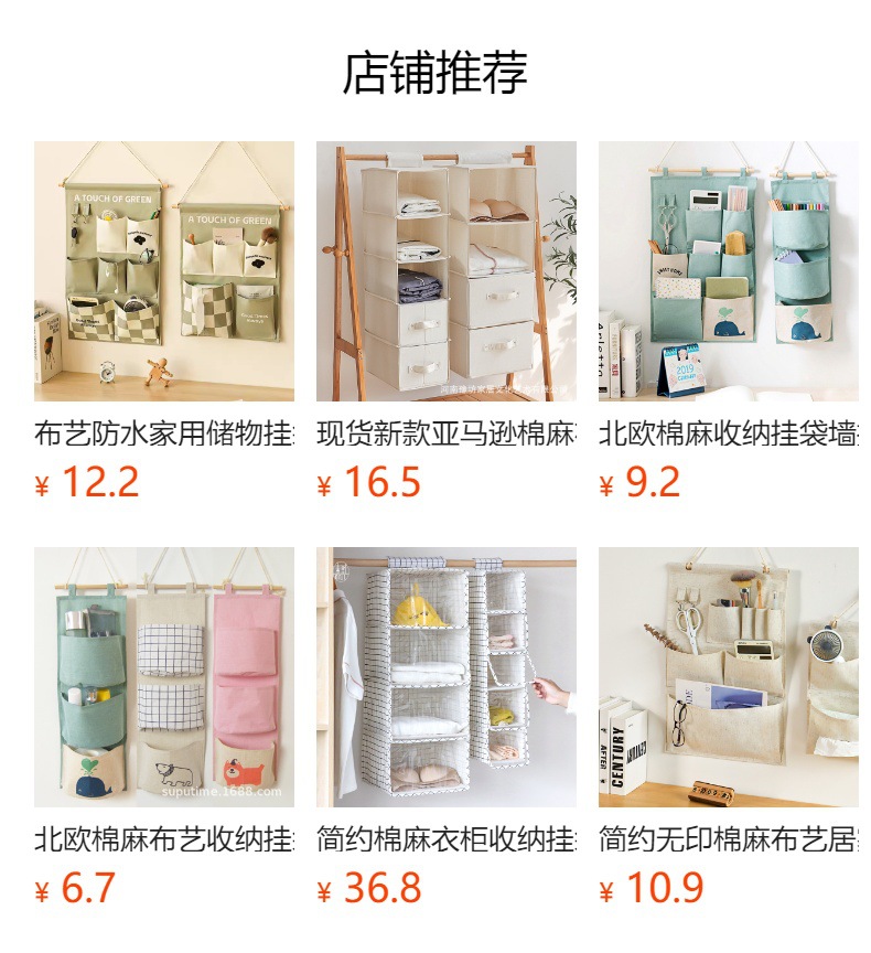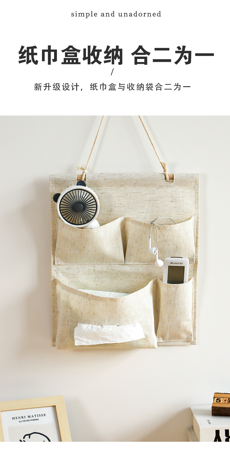 간단한 인쇄되지 않은 면 및 린넨 패브릭 홈 기숙사 도어 벽걸이 형 보관 가방 공장 도매스토어 가기