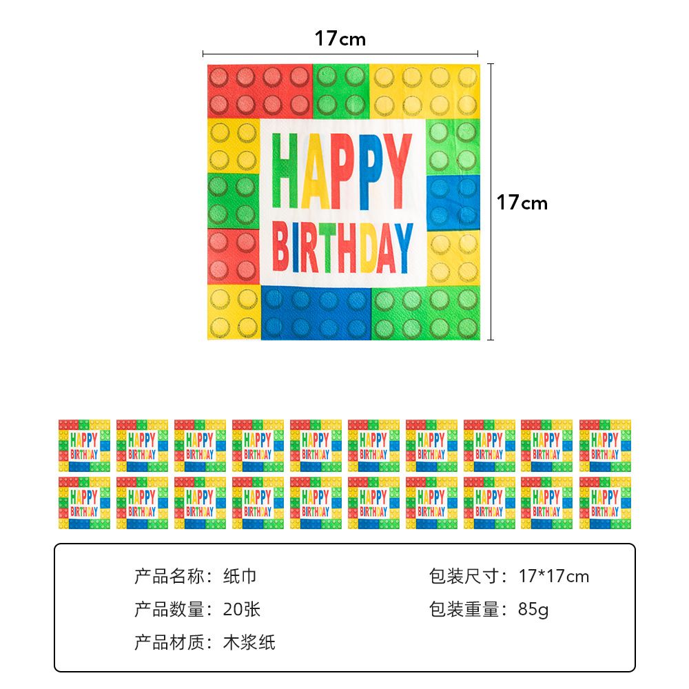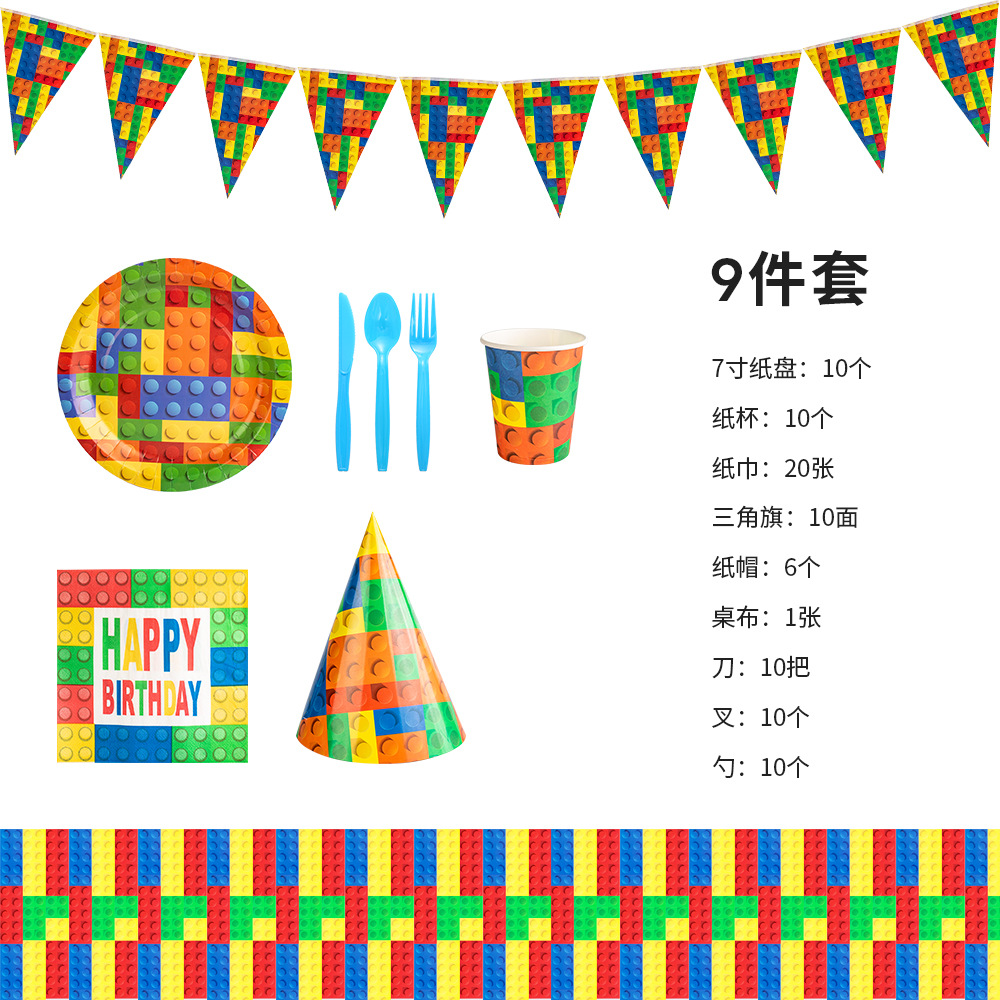 빌딩 블록 생일 파티 세트 어린이 게임 사각 종이컵 생일 파티 용품 일회용 생일 식기 공장스토어 가기