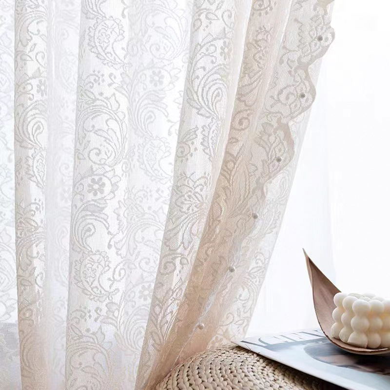 2025 새로운 프랑스어 복고풍 레이스 거즈 커튼 완료 거실 연구 투광 및 불투명 창 거즈 커튼 도매