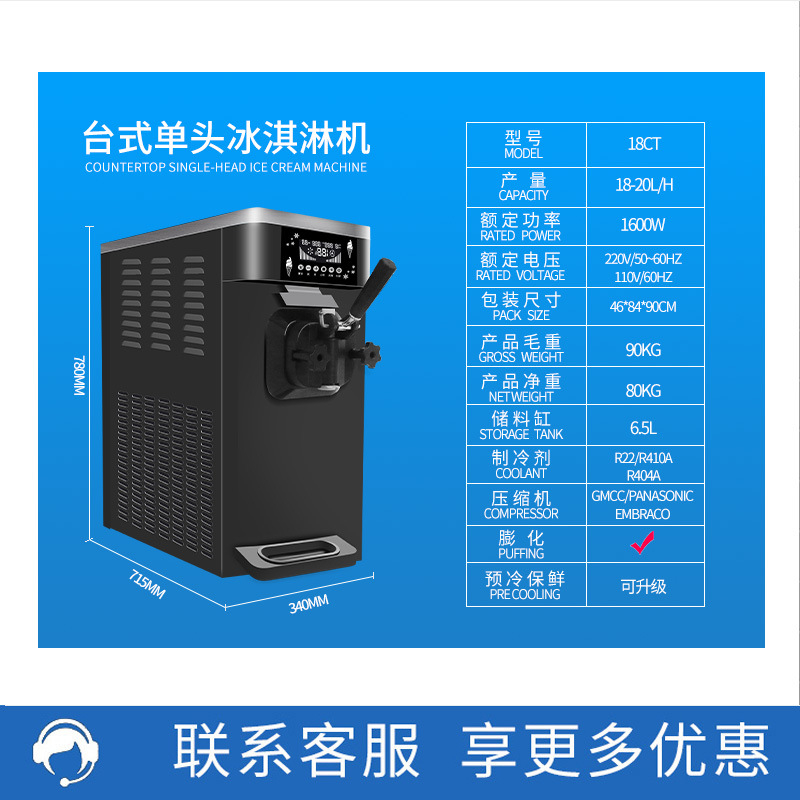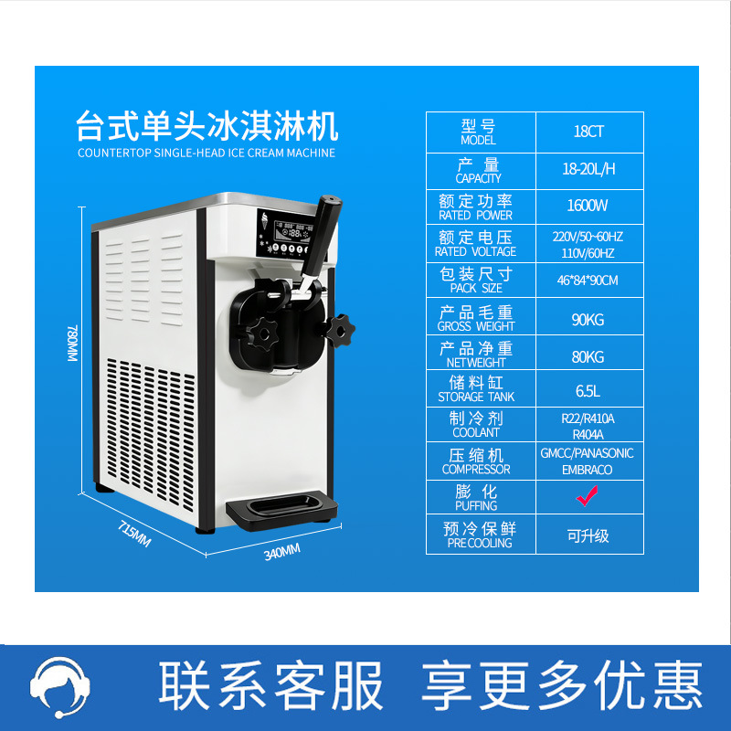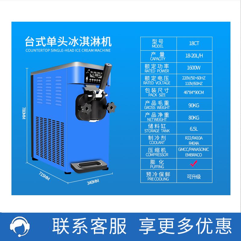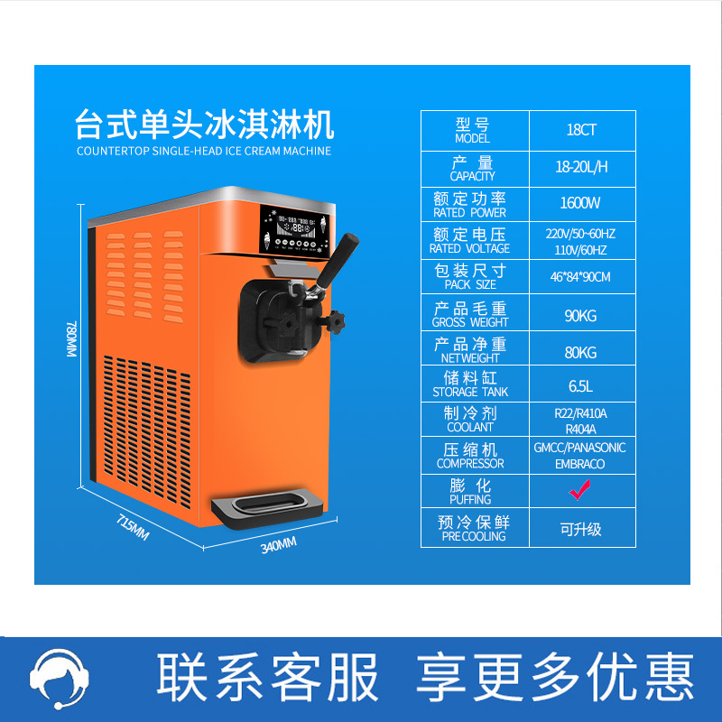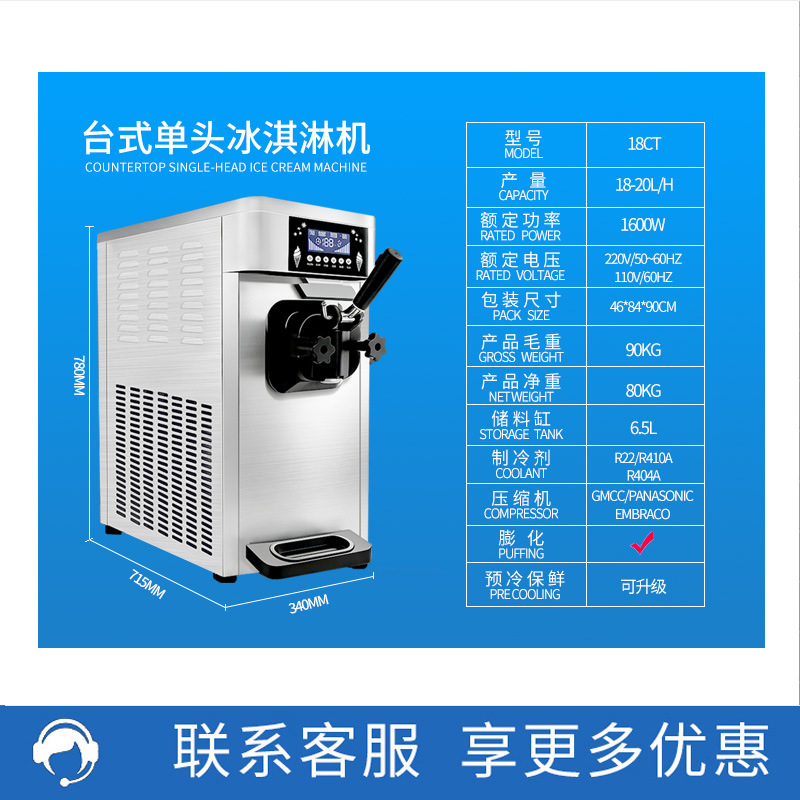 Macon 아이스크림 기계 상업용 싱글 헤드 데스크탑 아이스크림 기계 자동 스위트 드럼 기계 가정용 소프트 아이스크림 기계 도매스토어 가기