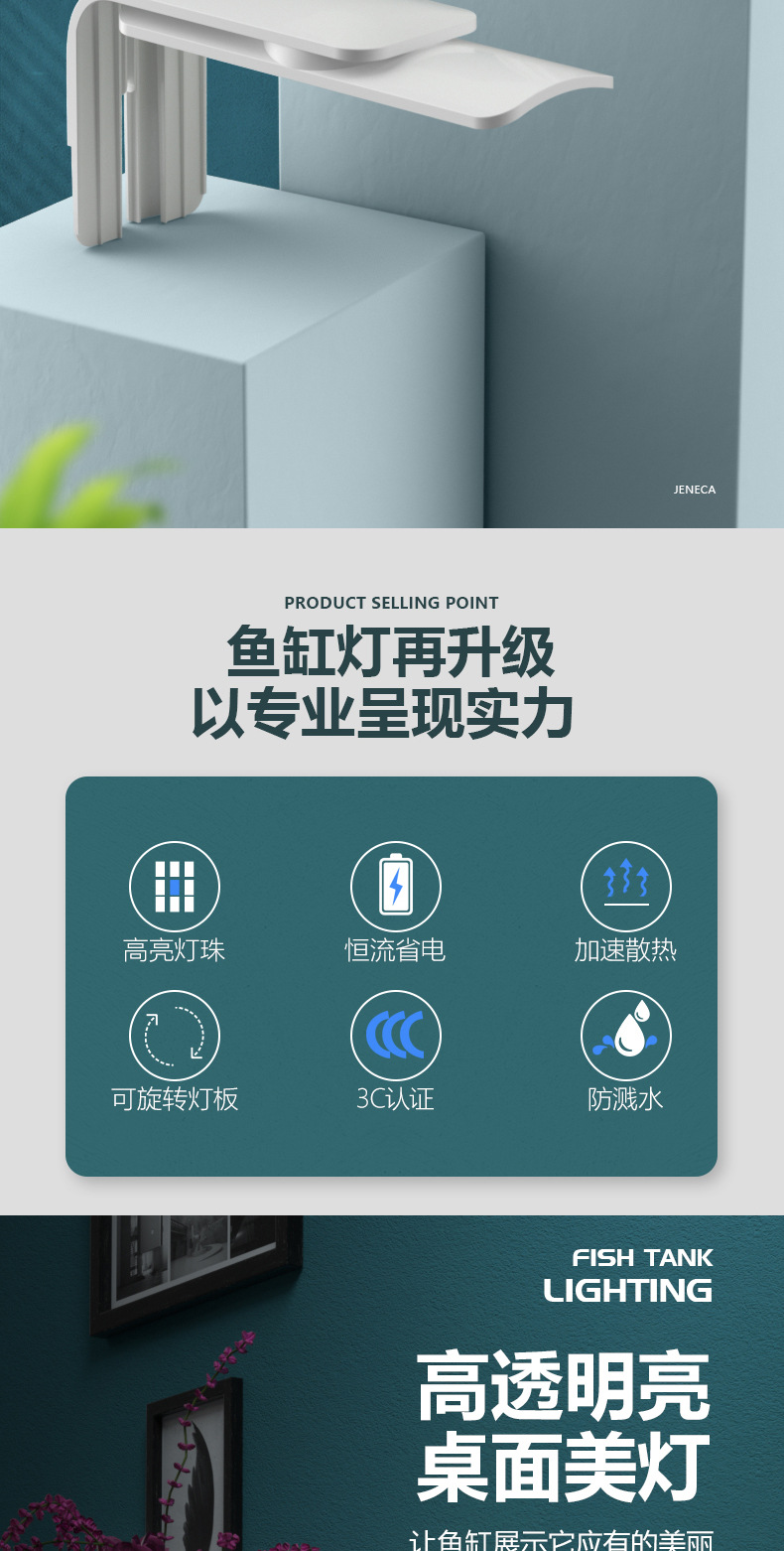 Jinlijia 어항 클립 램프 수족관 회전 램프 스탠드 수생 식물 조명 램프 블루와 화이트 라이트 하이라이트 에너지 절약 LED 램프