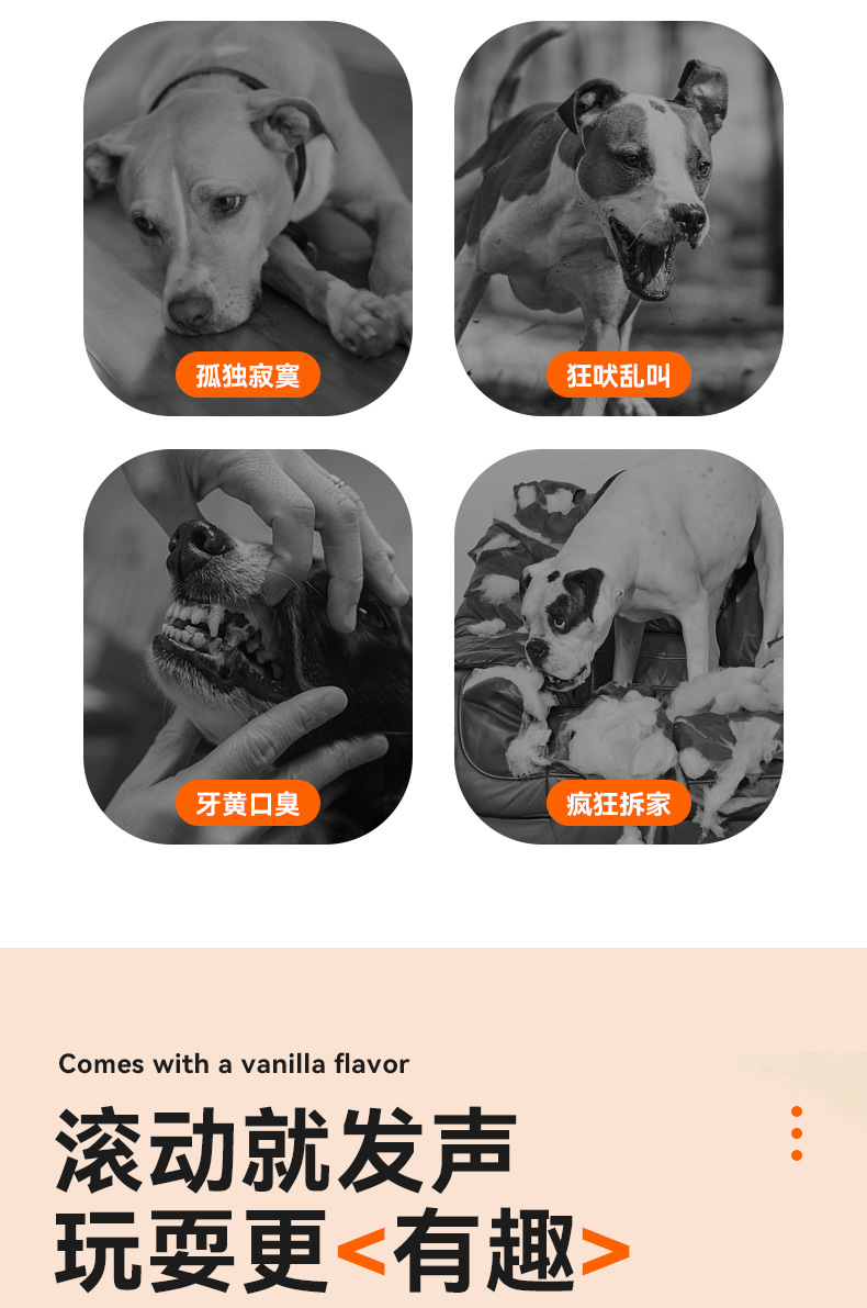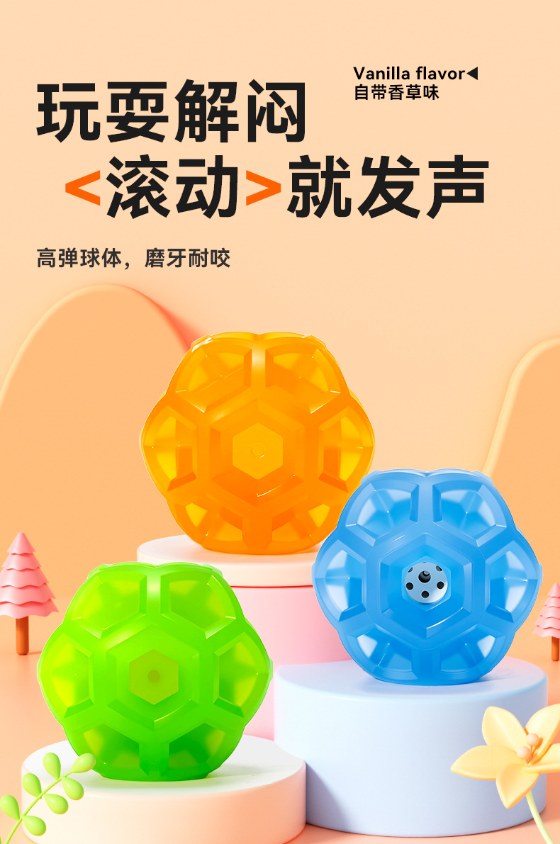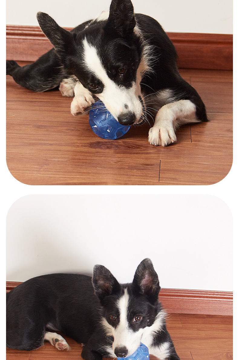 연 애완 동물 제품 새로운 tpr 탄성 흔들 롤링 볼 대화 형 물기 방지 사운드 개 장난감스토어 가기
